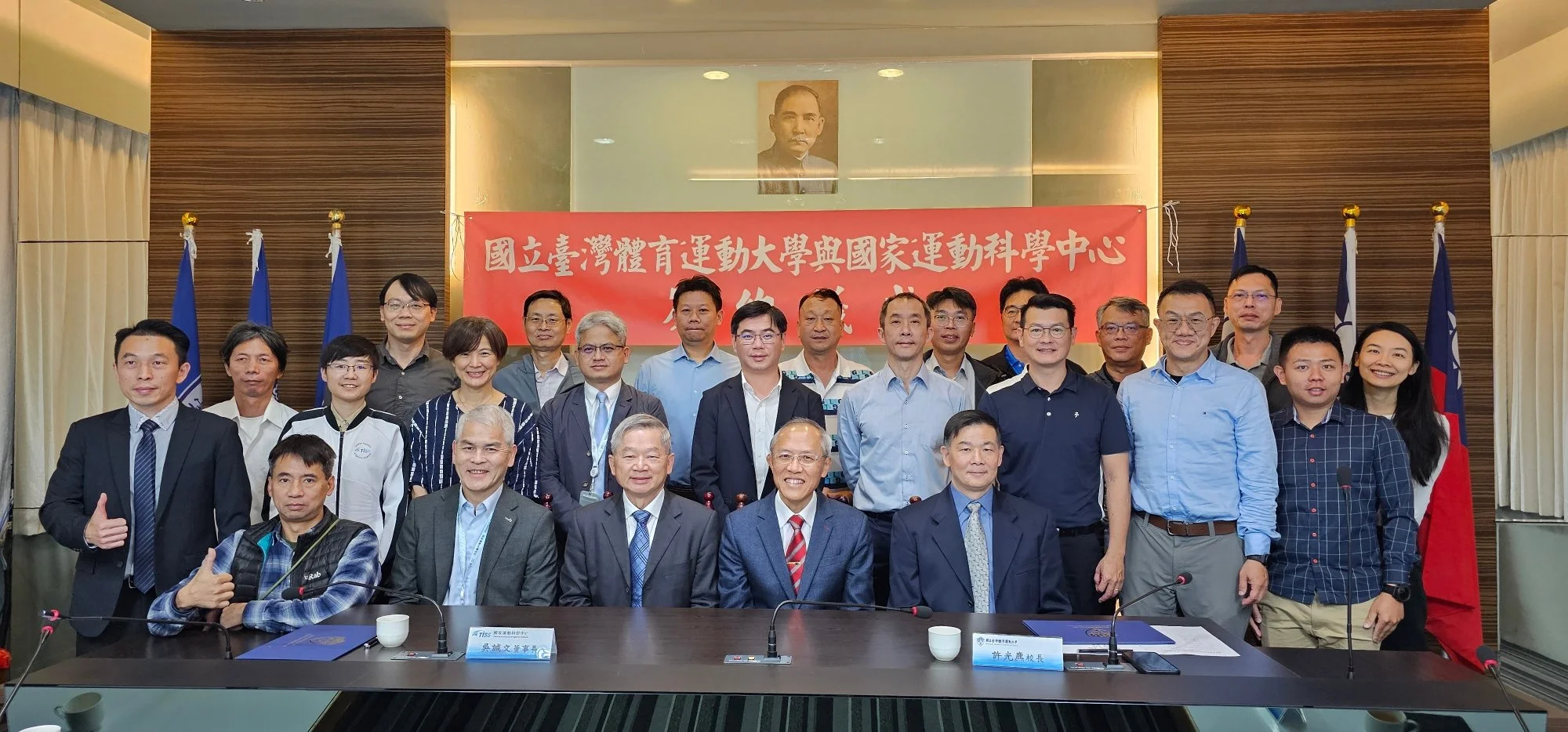 國家運動科學中心董事長吳誠文率領行政團隊出席,他表示,臺體大是繼成功大學、台北市立大學後,第三所簽約的大專院校。他回憶從小打棒球時,就對當年的省立體專(臺體改制前身)充滿仰慕之心,他說:「這所學校培養出很多的體育人才。」