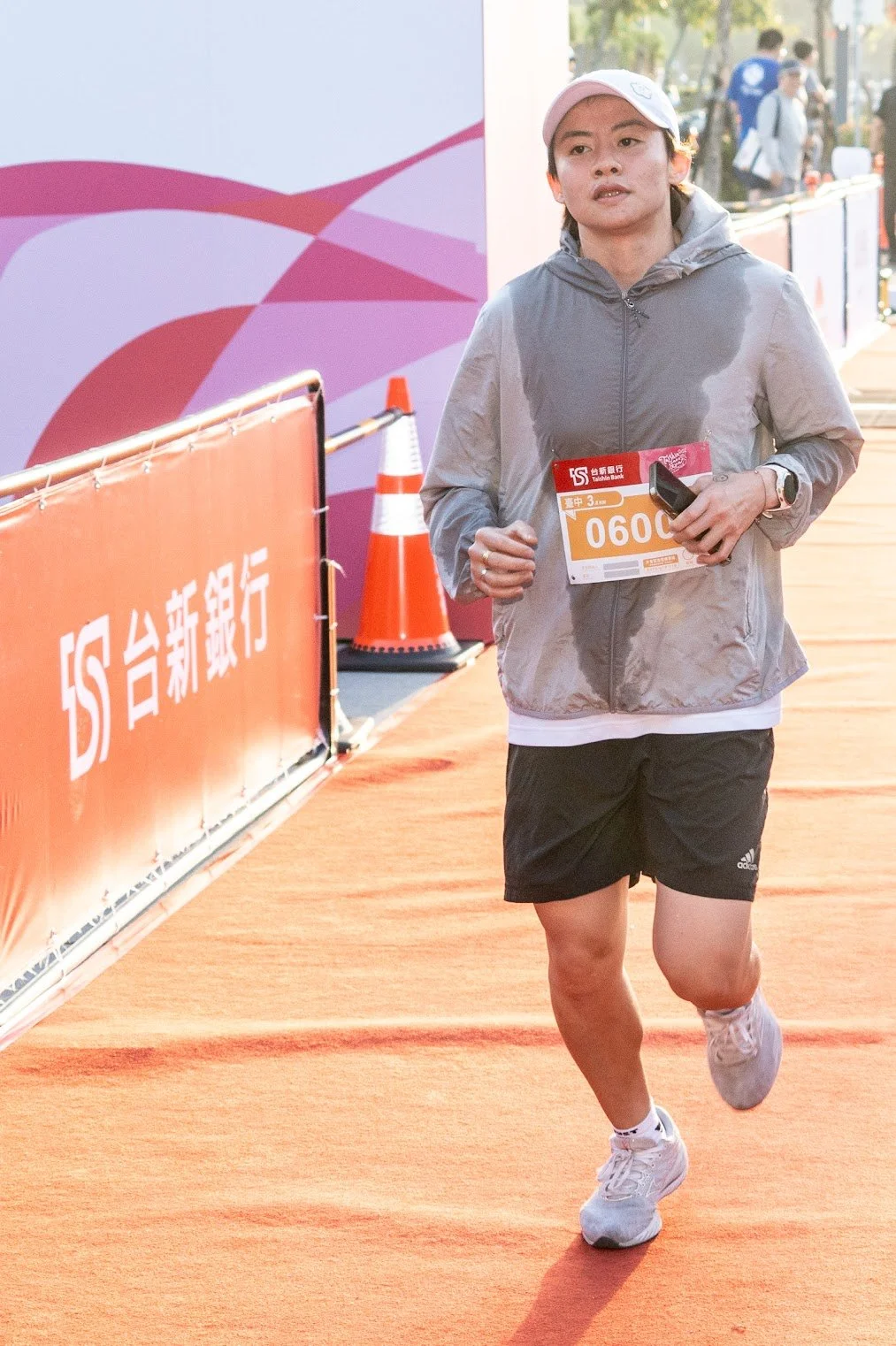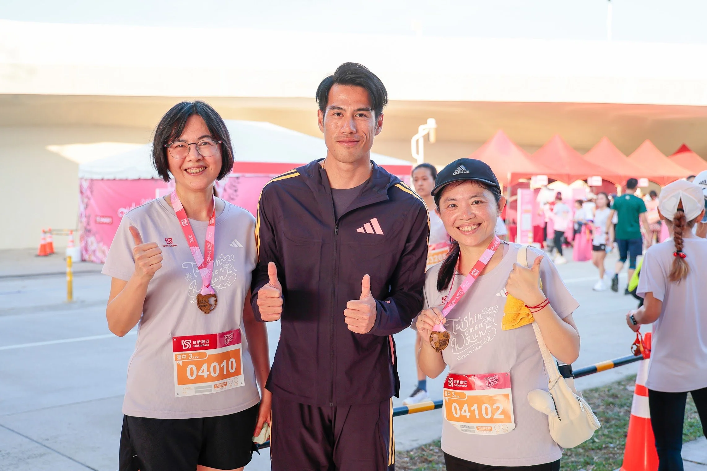 這是場「WOMEN ONLY」的路跑賽,大多數男性朋友能做的就是在一旁加油、貼心為女孩遞水和毛巾。賽事訓練夥伴adidas特別邀請贊助選手「臺灣最速男」楊俊瀚到場為10.2公里組鳴槍,並在終點處迎接完賽選手,為女孩們掛上完賽獎牌給予祝賀。