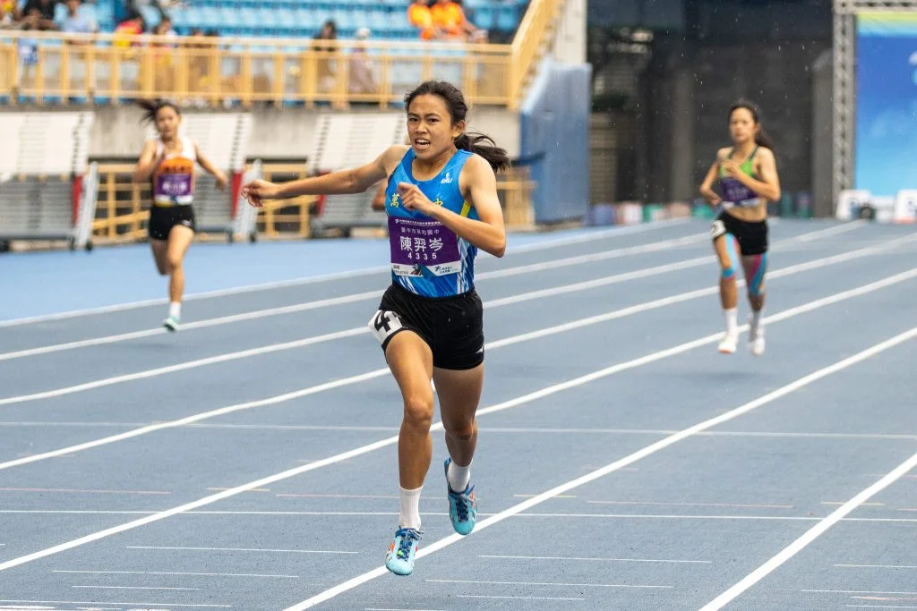 「陳羿岑,加油!」起跑前,隊友整齊的加油聲,讓她會心一笑,也收穫滿滿力量,除了感謝隊友、教練,她也想感謝從自己還沒成績就給予她支持的亞仕生醫,她說:「這次我報了200公尺、400公尺、400公尺接力、1600公尺接力、1600公尺混合接力,今天沒有成績的壓力,但體力是一大考驗。」有營養品的支持,讓她能有好的狀態面對後續賽事。