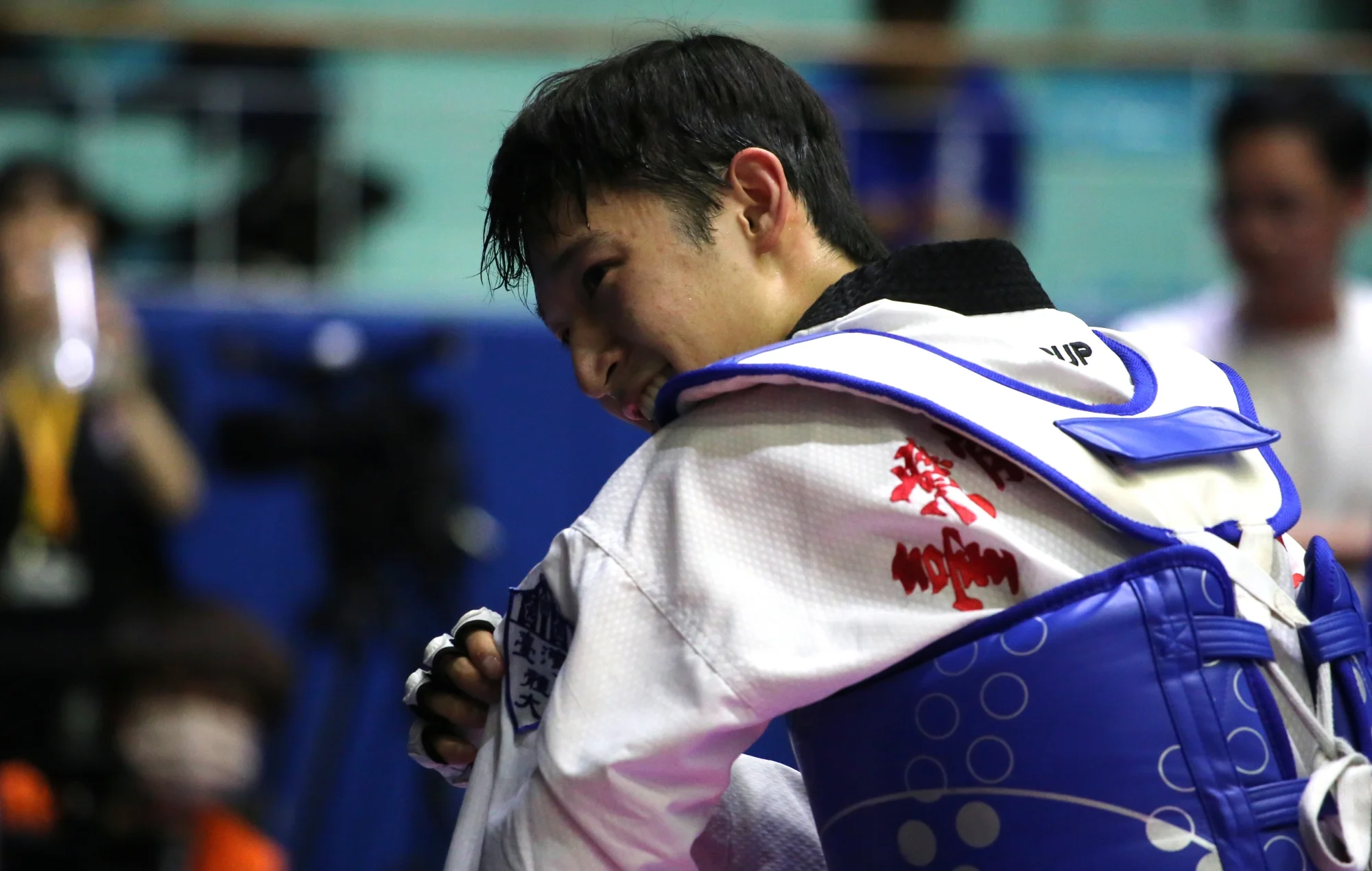 替台灣體大奪下跆拳道對打公開男子組58公斤級金牌的陳柏諺,賽後幾度哽咽,但仍穩住情緒,冠軍夾雜著喜悅,還有兩年來低潮的無奈。