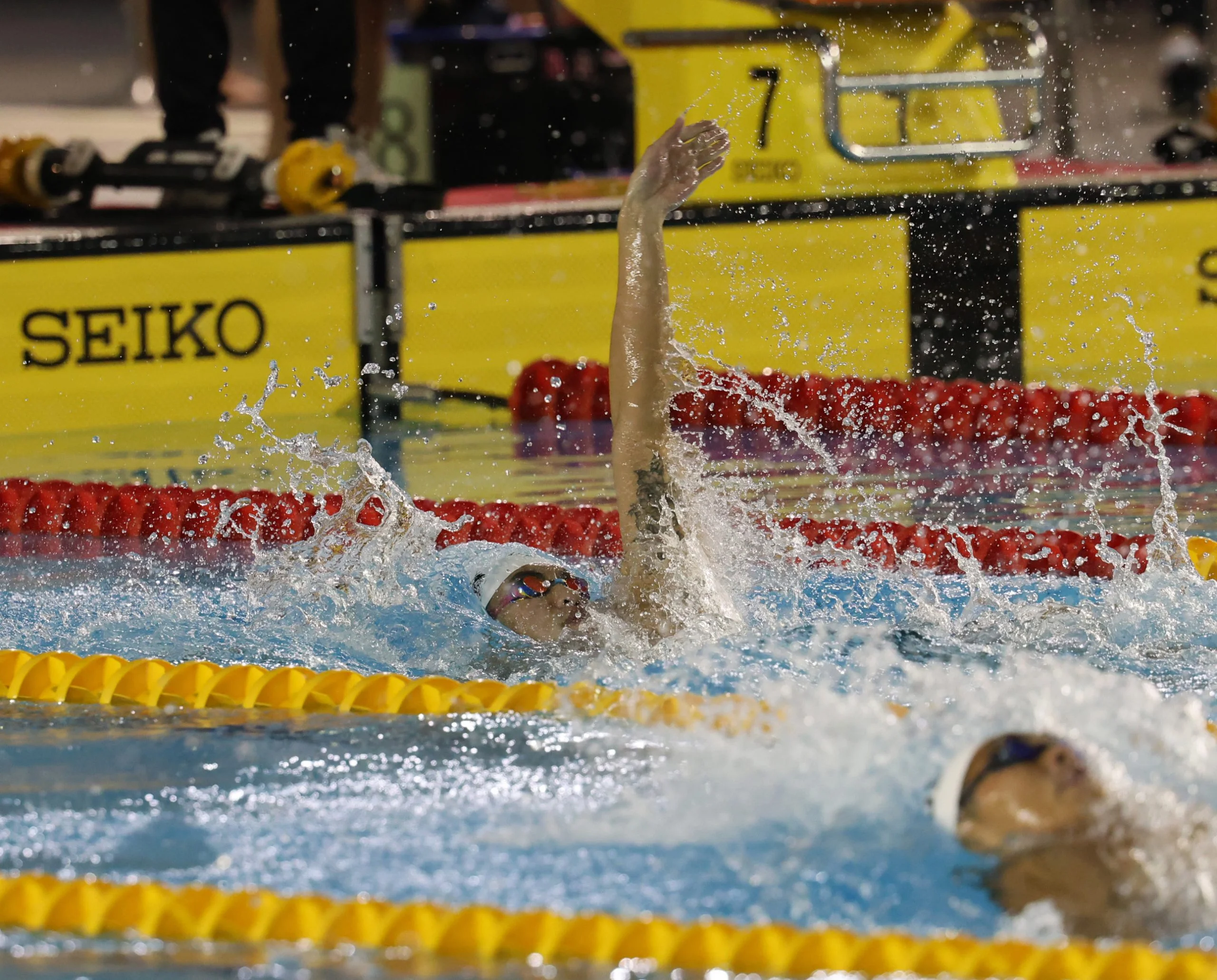 今年莊沐倫不只在主項目50仰、100仰及200仰繼續衛冕,100仰式還以54秒83游破自己所創的大會紀錄55秒24,也超過去年杭州亞運的54秒88,不過比起破紀錄,莊沐倫更在意的是自己能在100仰式維持54秒多的成績,也為接下來挑戰巴黎奧運達標增添一點信心。