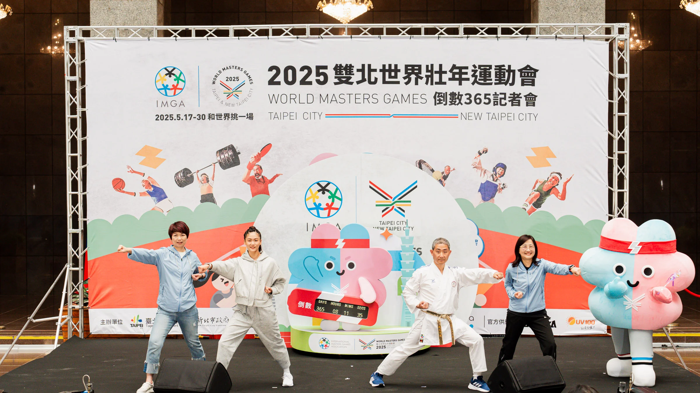 「2025雙北世界壯年運動會」將於明年5月17日至30日舉辦,今(17)日於臺北市市政大樓,由執行委員會主任委員臺北市副市長林奕華及副主任委員新北市政府副秘書長龔雅雯共同展示以吉祥物壯寶為設計元素的倒數計時鐘,記者會特別邀請前空手道國手「小清新」文姿云強勢站臺,化身「魔鬼教練」助啟蒙恩師趙志才再披戰袍備戰賽會,共同迎接2025雙北世壯運進入倒數365天。