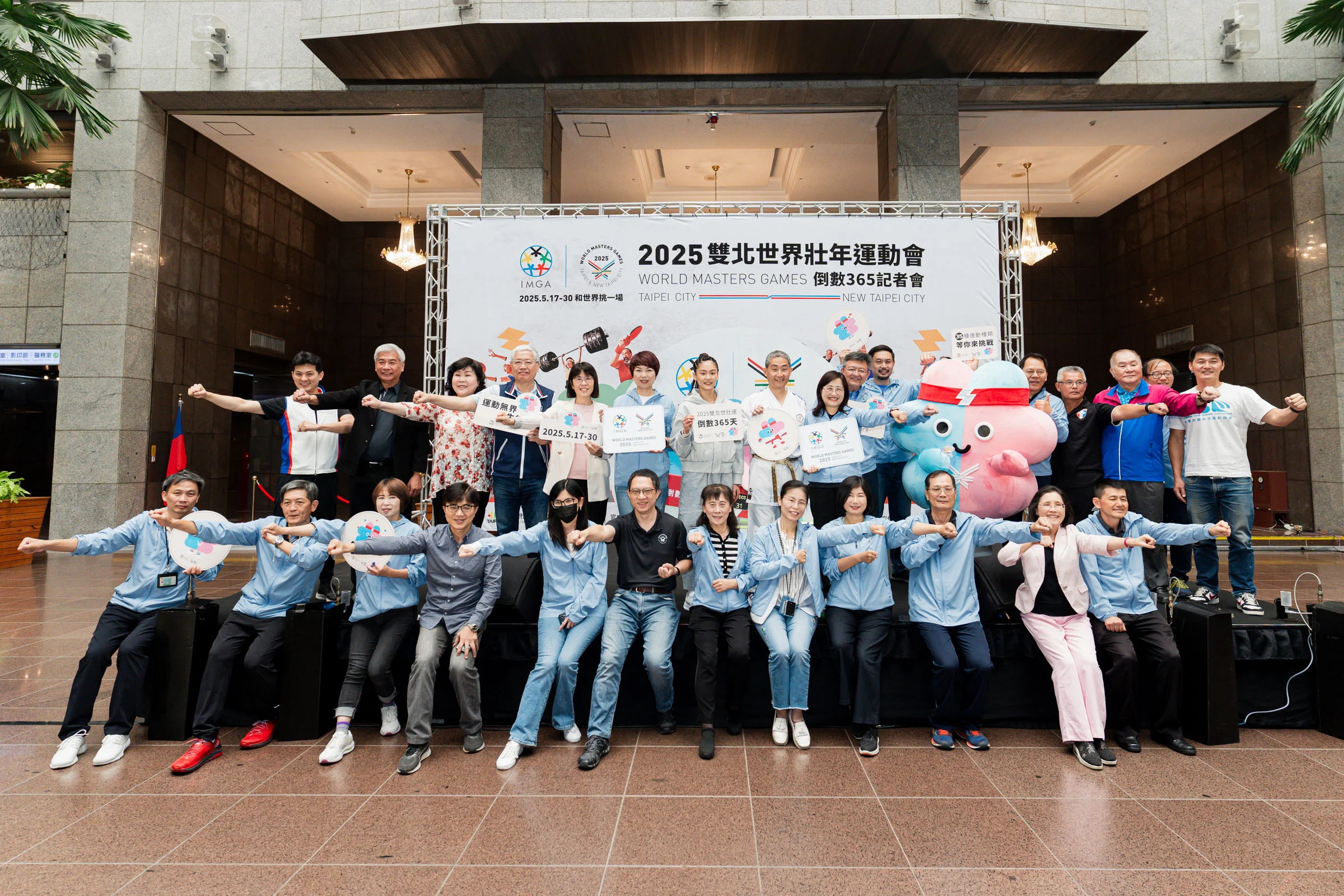 「2025雙北世界壯年運動會」將於明年5月17日至30日舉辦,今(17)日於臺北市市政大樓,由執行委員會主任委員臺北市副市長林奕華及副主任委員新北市政府副秘書長龔雅雯共同展示以吉祥物壯寶為設計元素的倒數計時鐘,記者會特別邀請前空手道國手「小清新」文姿云強勢站臺,化身「魔鬼教練」助啟蒙恩師趙志才再披戰袍備戰賽會,共同迎接2025雙北世壯運進入倒數365天。