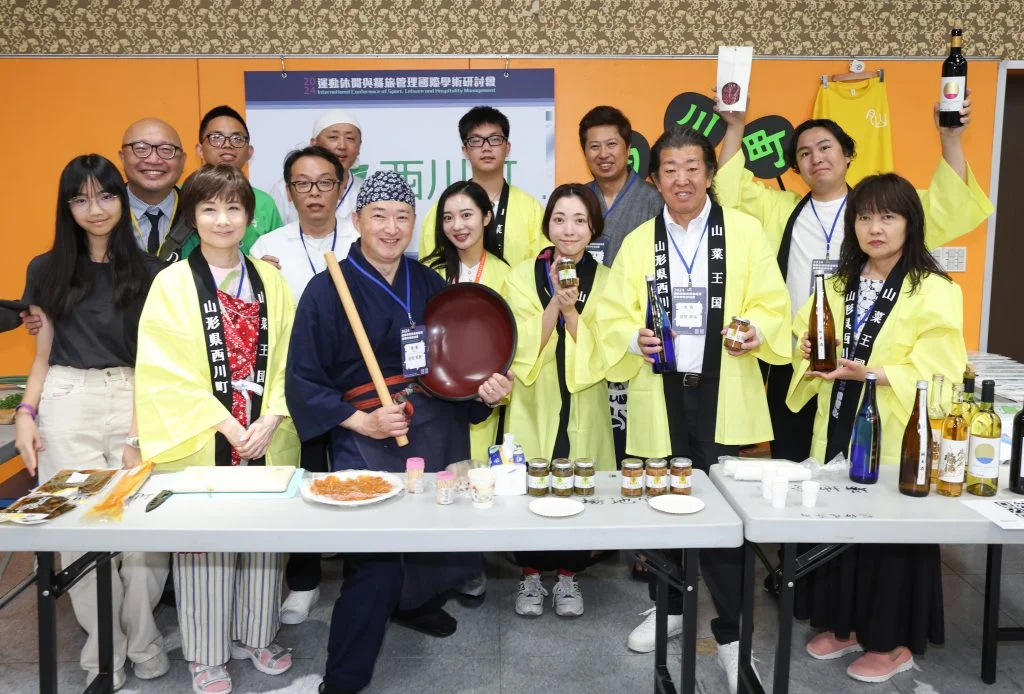 除了專題演講與參與者的口頭發表,研討會還特別邀請日本山形縣西川町舉辦日本文化體驗,包括當地名產介紹,甚至有蕎麥麵、茶道與和果子的體驗,由休旅所副教授林伯修負責,他表示,臺師大與西川町的緣分由山形大學教授竹田隆一搭起,雙方並在2013年簽下產學合作,每年修習運動觀光課程的同學與畢業的學生,都能到當地參加滑雪活動,真正親身參與運動觀光的發展經驗,讓學生們收穫滿滿。
