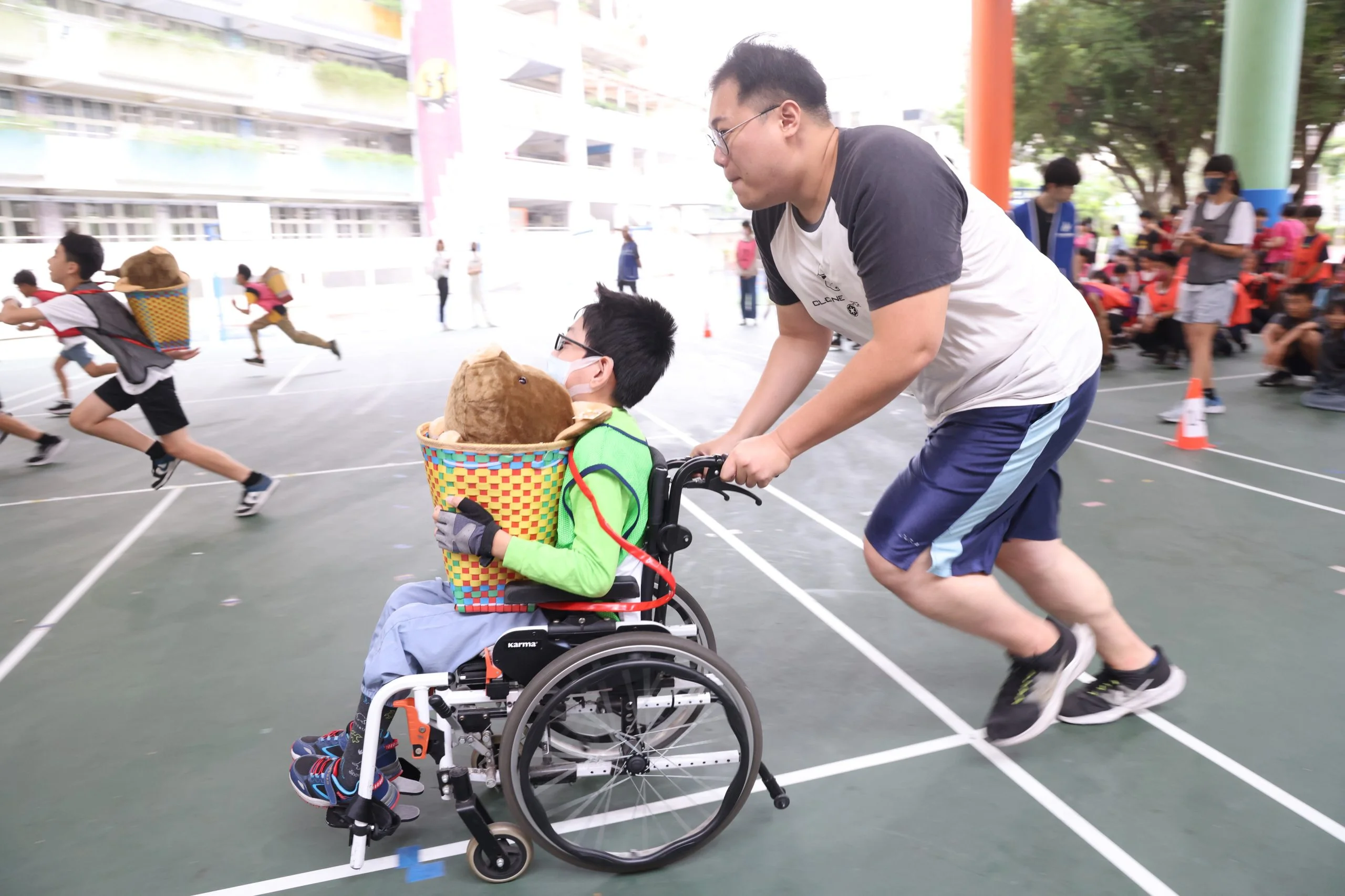 兩校近900名師生一起參與「扛著山豬跑-新北市原住民運動趣味挑戰賽」活動,六年級全體畢業生出席挑戰扛著山豬跑(負重接力)以及山林神射手(射箭)等,其中丹鳳國小陳同學雖罹患腦性麻痺坐著輪椅,但仍和導師葉治廷合作一起推著山豬跑,與同學們一起在運動場上揮灑汗水,留下獨特又歡樂的畢業回憶。三重集美國小黃同學表示,這是他們第一次拿起弓箭射箭,直呼太有趣了,第一次看到山豬靶,感覺很像牛排位置;而丹鳳國小的畢業生張同學說「原本以為扛著山豬跑很簡單,原來很講究團隊合作,必須要有人幫忙把山豬扛上,才能跑得快」。