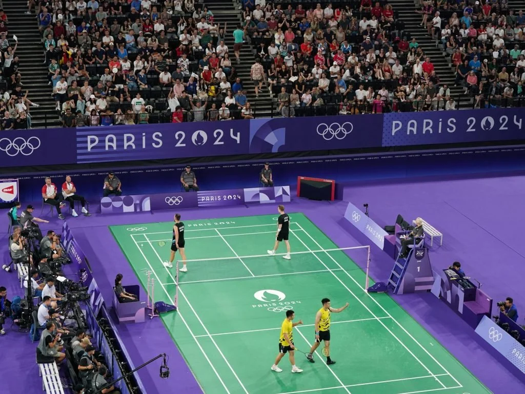 巴黎奧運羽球男雙準決賽,麟洋配遭遇世界第二丹麥組合,Kim Astrup/Anders Skaarup Rasmussen,儘管分組賽時擊敗過對手,依舊面臨頑強抵抗。首局他們以18比21讓出,第二局討論後改變戰術,透過發長球與平抽擋打亂對方節奏,也製造出自身進攻機會。