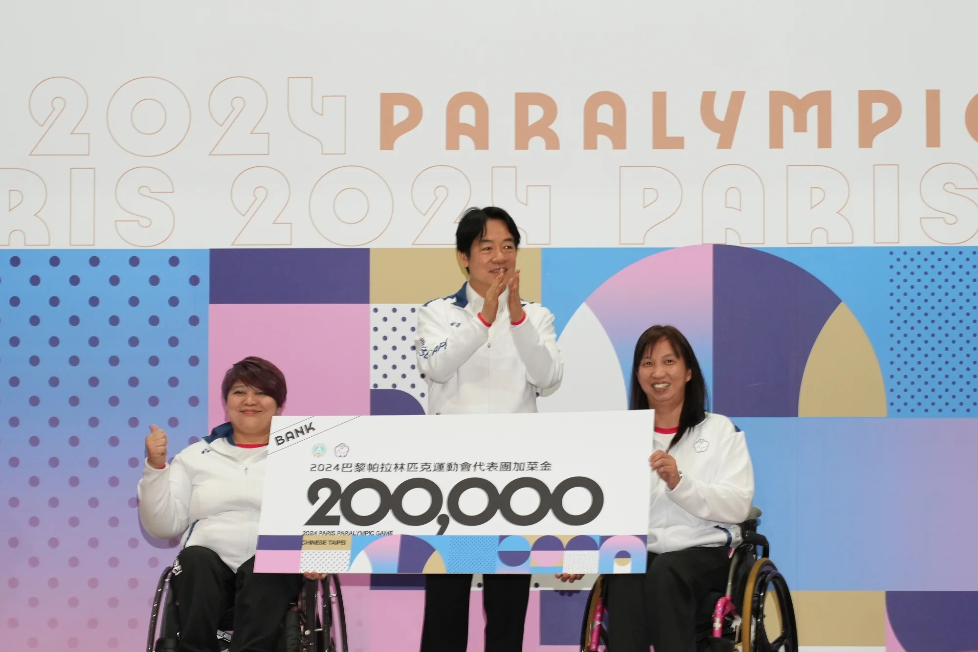 總統賴清德這天授旗給我國帕運代表團,頒發20萬元加菜金,並同時宣布今年巴黎帕運摘金選手,國光獎章獎金從400萬元調高至600萬台幣,且可按月領終身俸,銀牌與銅牌,分別提升至210萬元跟150萬元,但限一次領取,以及教練獎金調整至80萬元。