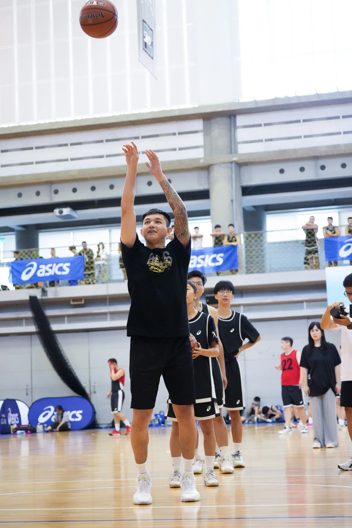 首場台中站賽事特別邀請TEAM ASICS籃球選手,桃園璞園領航猿-盧峻翔以及台北富邦勇士-簡廷兆出席,與現場球友組隊挑戰中場遊戲,兩位球員也勉勵參與賽事的大家享受比賽,並透過三對三運動好好放鬆紓壓。
