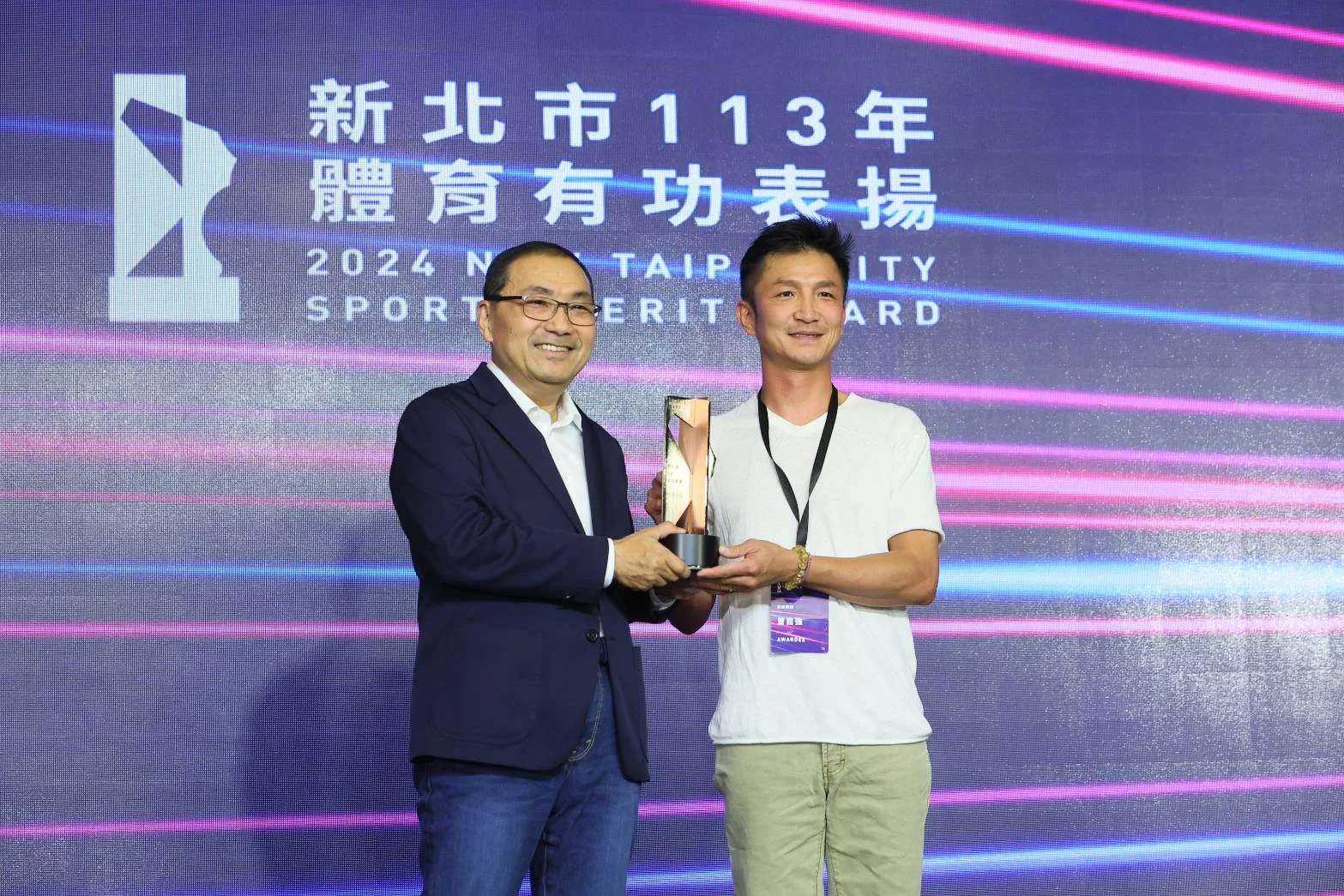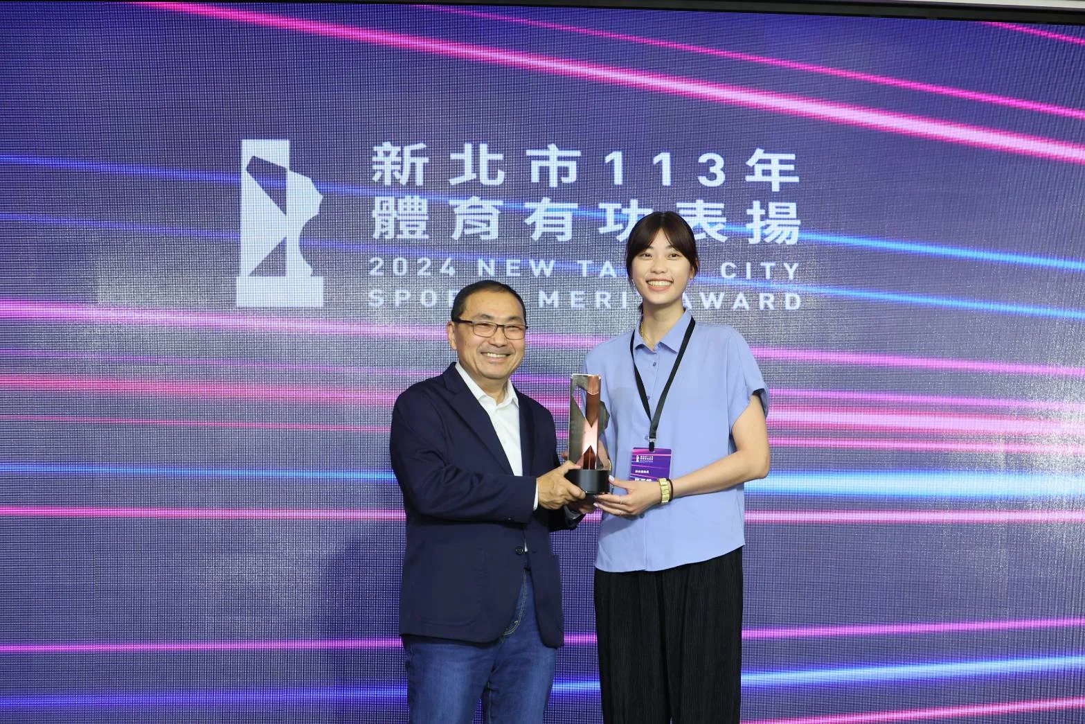 新北市113年體育有功表揚在市府舉辦,頒獎典禮現場以2025雙北世壯運賽會主題曲《敬,夢想》為概念,規劃以「夢想」為主題的展覽迎接獲獎人,侯友宜市長出席頒獎,不僅向大家表達感謝,更期許大家共同繼續為新北體育努力,今年新北體育有功獲獎包含傑出運動員、傑出教練、有功人員、機關團體及單項委員會等共75個獎項,其中剛拿到巴黎奧運拳擊金牌的林郁婷,偕同教練曾自強一起出席領獎,也是巴黎奧運國手的陳玟卉、羅嘉翎及戴宇軒等都親自到場領獎,現場星光閃耀,個個為國家奮戰的英勇表現,是國人心目中的臺灣英雄!