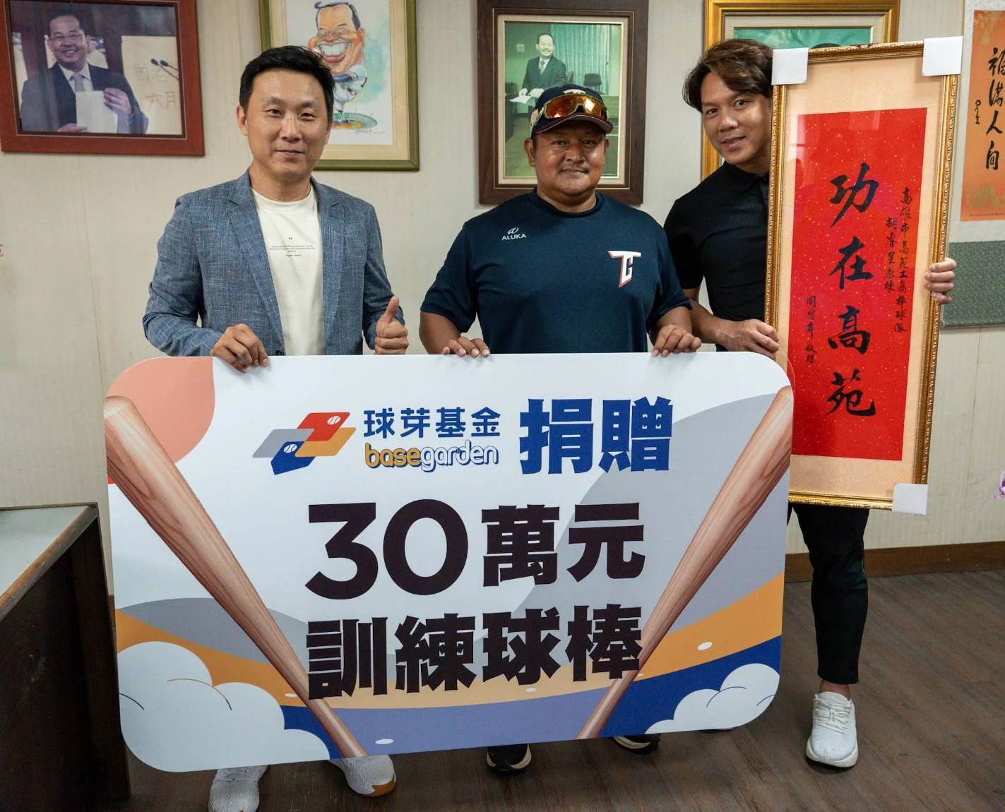 周思齊今天(18日)趁著球隊沒有比賽的空檔,特地到高苑工商拜會余政憲董事長,除了感謝過去余政憲對棒球隊的照顧外,同時也特地捐贈30萬元球棒給高苑工商學弟。