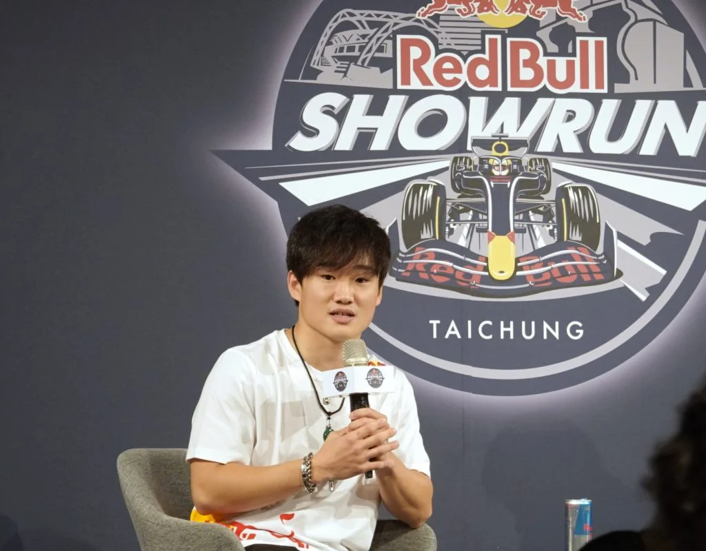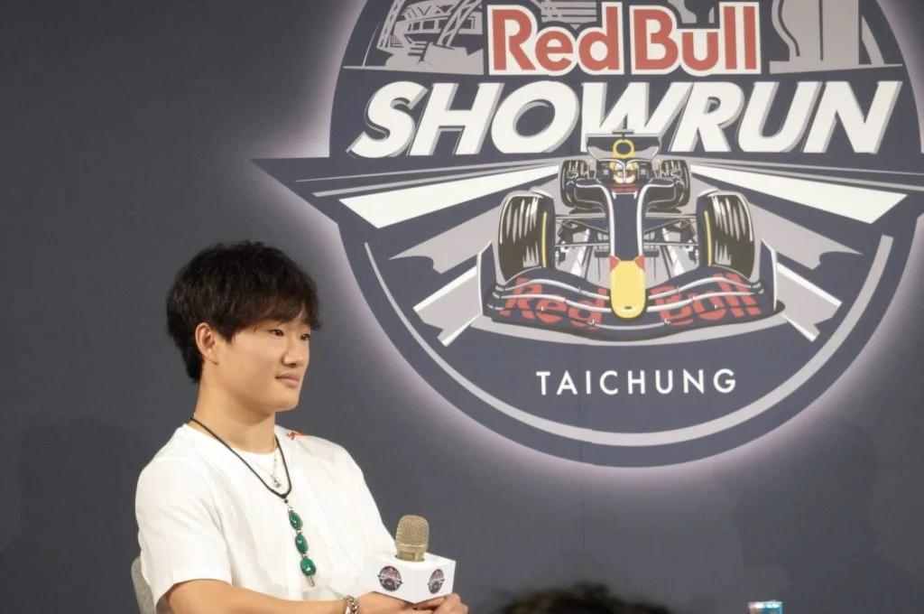 日本F1車手角田裕毅來台參與Red Bull Showrun 台中活動,他在記者會上以自身經歷,鼓勵夢想成為F1車手的孩子。