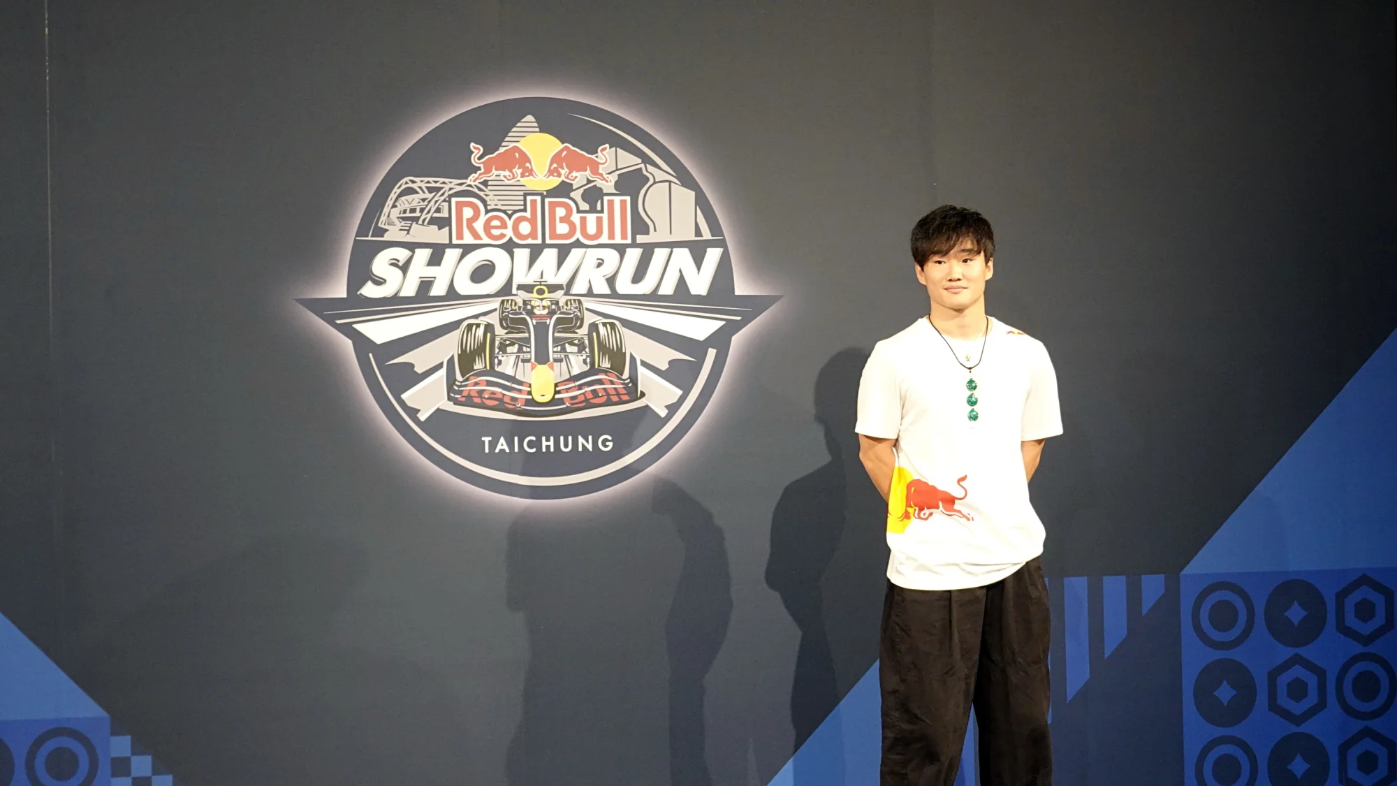 日本F1車手角田裕毅來台參與Red Bull Showrun 台中活動,他在記者會上以自身經歷,鼓勵夢想成為F1車手的孩子。