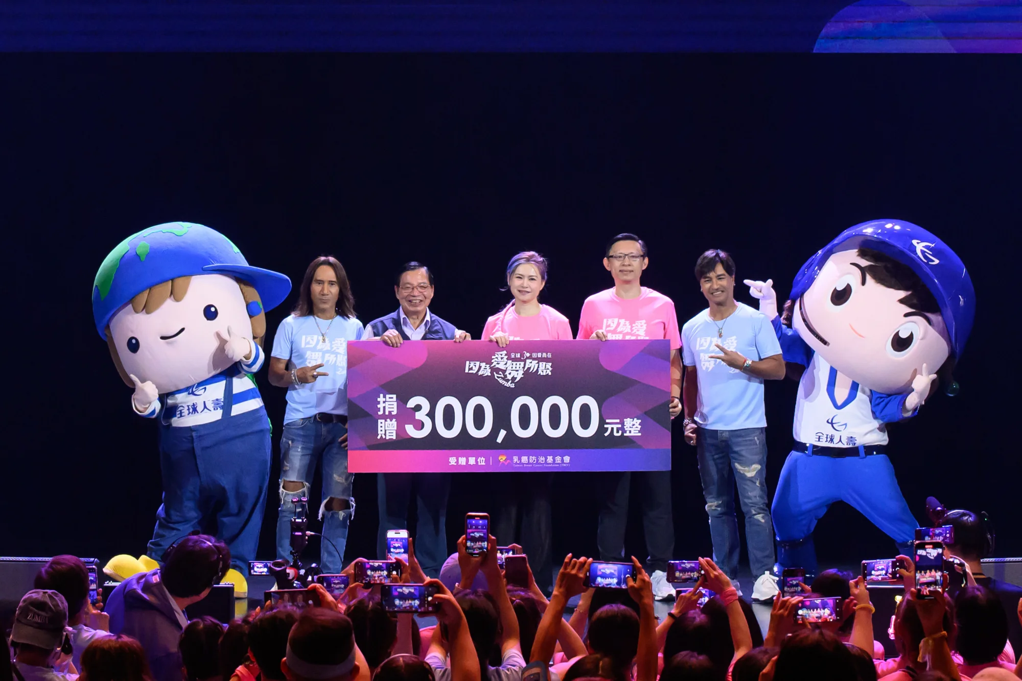 全球人壽董事長林文惠表示,全球人壽長期支持台灣體育發展,秉持「因為愛 責任在」的品牌理念,舉辦Zumba活動推廣健康生活風氣。適逢全球人壽30周年,將活動部分報名費連同「全球人壽保戶子女獎學金暨公益加一加」總計30萬元善款,捐助財團法人乳癌防治基金會,藉此倡導「事前預防」的健康觀念,號召社會大眾關注自身健康並踴躍參與公益,盼拋磚引玉落實企業社會責任。