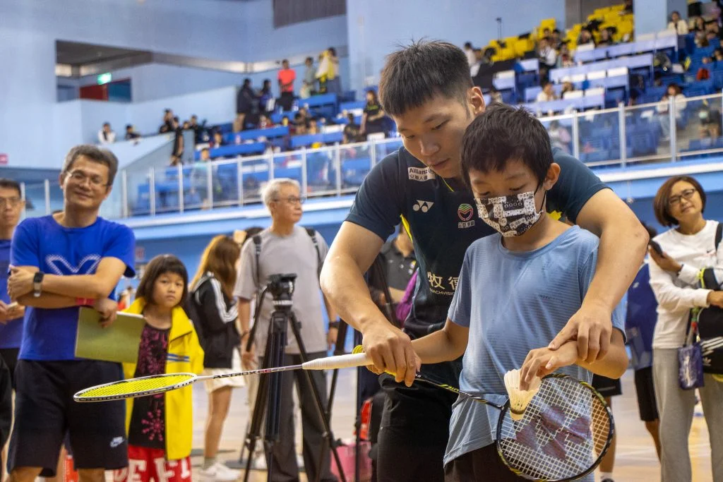 生麗羽你同行國小暨親子分齡賽,今日在台北體育館盛大舉行,並推出奧運金牌選手「麟洋配」與家扶基金會合作的聯名勝利杯,李洋也現身活動現場,擔任教練指導小球員,他也期待發揮影響力,讓更多人願意喜歡並參與運動。
