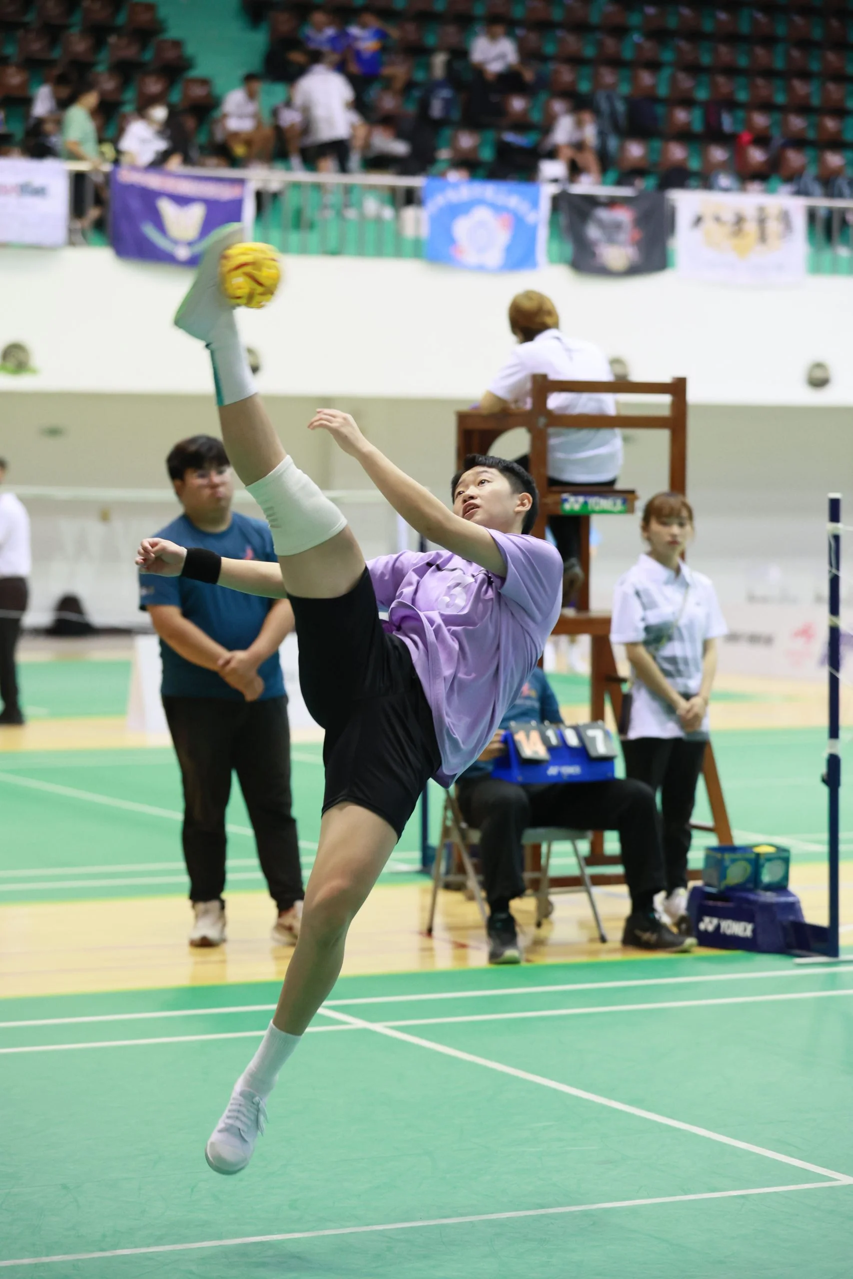 男子組部分,鍾青潾、潘俊宇與彭佳俊組成佳冬高農A,其中鍾青潾今年五月才剛參加過馬來西亞世界盃D1賽事,熬過第一次國際賽的緊張心態,現在他在場上不會膽怯,踢得更好。今天能從預賽連續贏過對手,他認為,團隊有把氣勢拿出來,雖然有時反而因此出現失誤,但最後還是有穩住,完成賽前設定的目標,也期待明天能延續,「再拿一個冠軍,更圓滿!」