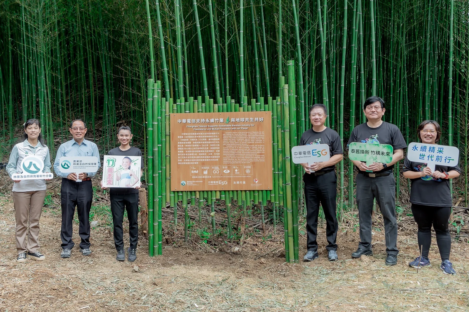 中華電信致力推動ESG永續發展,自2022年與農業部林業及自然保育署合作8年15萬棵造林計劃,攜手中華電信永續發展大使戴資穎於全台植樹至今種下41,415棵樹,今年加碼參與農業部林業及自然保育署推動「自然碳匯生物多樣性保育專案媒合平台」—「泰舊換新 竹構未來」專案,今(26)日協同永續發展大使戴資穎,並邀請農業部林業及自然保育署廖一光副署長共同啟動「泰舊換新 竹構未來」ESG專案,展開大溪事業區第6林班桂竹林地為期4年的撫育計畫,並與竹林周邊泰雅族部落團體合作,共同守護竹林生態永續。