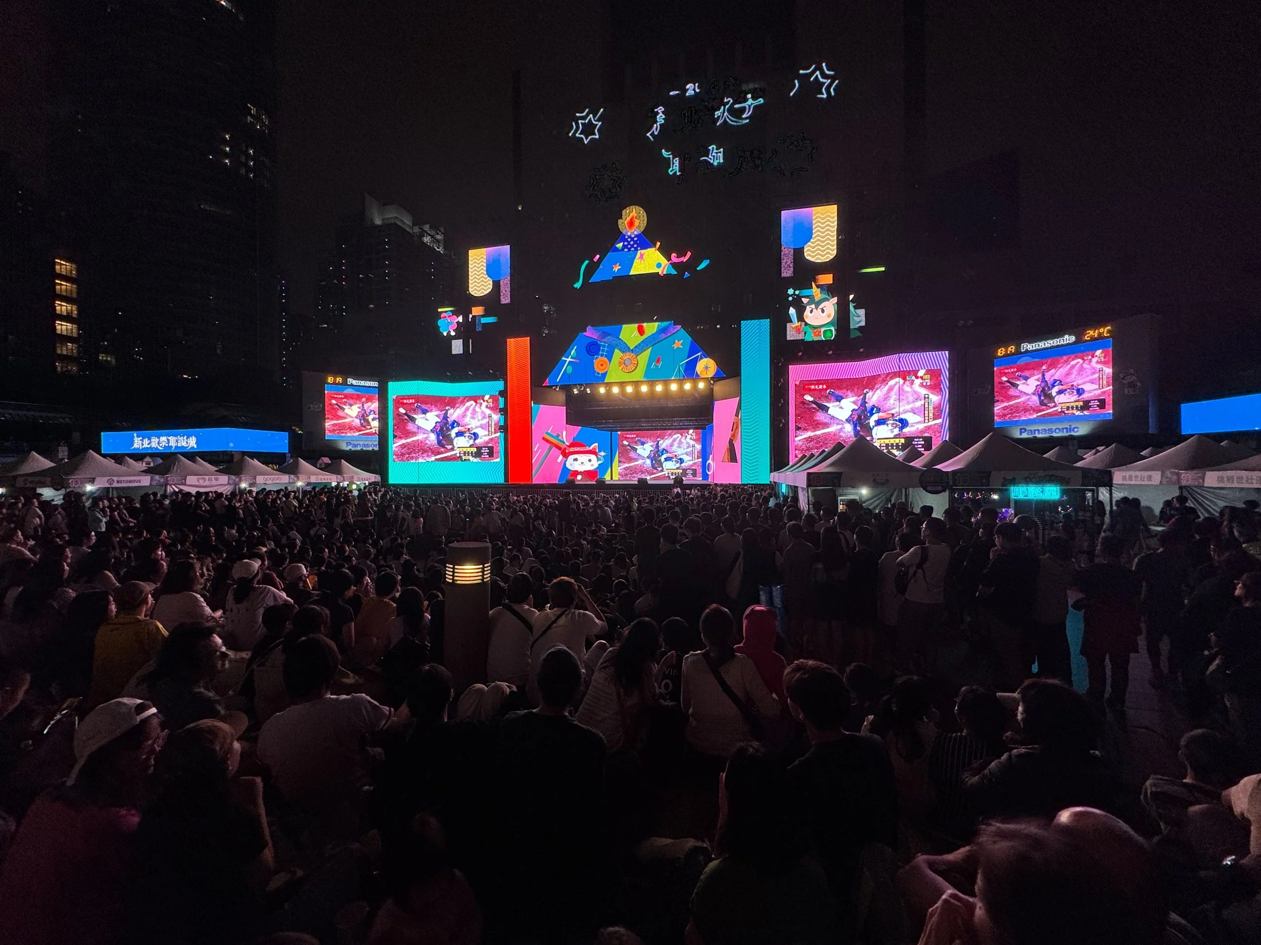 新北歡樂耶誕城開城首週即轟動,8層樓LED和新北轉運站LED,共6大面螢幕連續3天直播世界12強棒球賽,16日晚侯友宜現身中日大戰,與現場超過萬名球迷一起為中華隊加油,由熱血主播徐展元帶來精闢的解說,專業應援團、啦啦隊女孩合力帶領,成為新北最強應援!