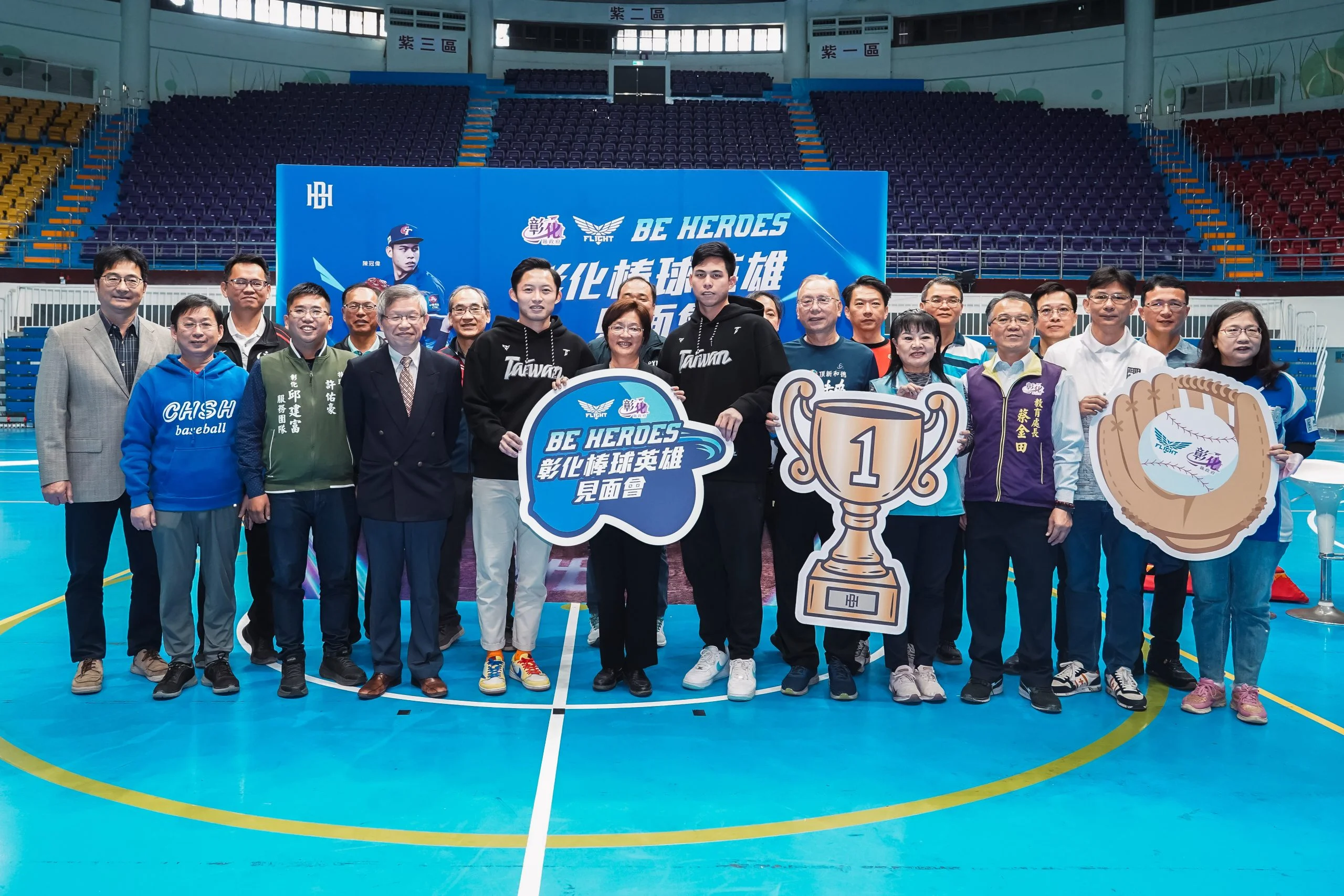 在2024第三屆世界棒球12強賽中,中華隊以4比0完封日本隊,成功奪下冠軍,這不僅是中華隊首次在國際一級賽事中封王,更終結了日本國際賽27連勝的紀錄,為台灣棒球寫下嶄新的歷史篇章。今(5)日特別邀請到中華隊奪冠功臣,也是出身彰化的兩位重要牛棚主力—江國豪(富邦悍將)與陳冠偉(味全龍),分享奪冠喜悅,並鼓勵彰化基層棒球的孩子們。王惠美縣長親臨現場表揚,專案頒贈每人各15萬元獎金,並禮聘兩位選手為「特聘棒球指導教練」,請冠軍選手至縣級學校進行棒球教學、訓練交流,以促進彰化縣體育交流發展,同時宣布將撥補「彰化縣運動發展基金」1,000萬元,用於獎勵、培育下一個彰化之光、台灣之光。
