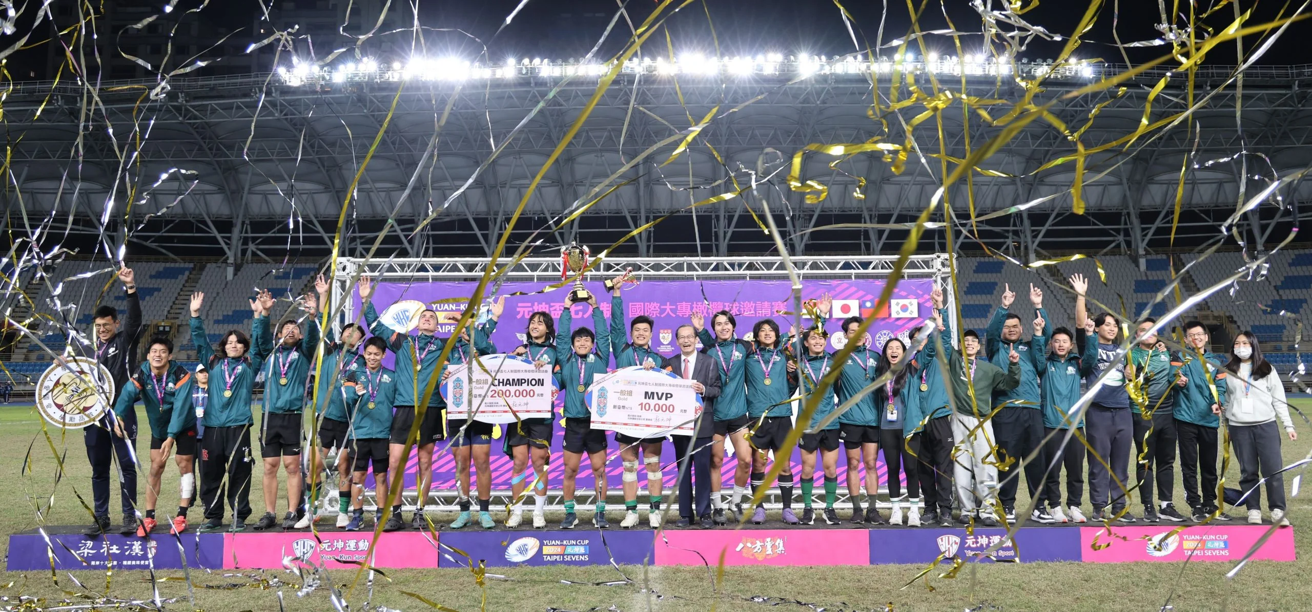 2024元坤盃七人制橄欖球邀請賽公開組冠軍為日本拓殖大學,亞軍日本關西大學,季軍天理大學。一般組則由台灣大學收下三連霸,亞軍是韓國首爾大學,季軍為陸軍官校。