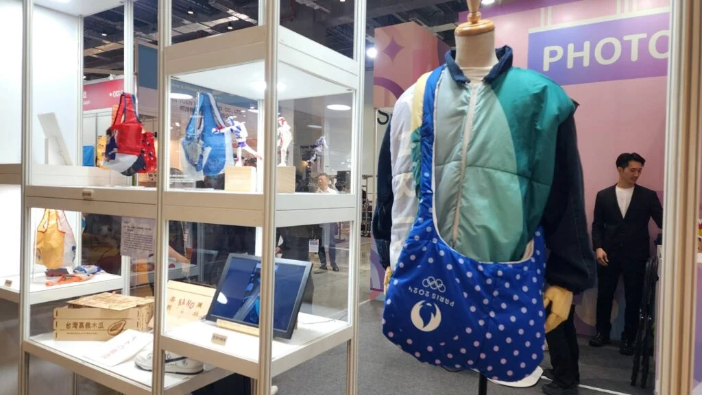 日前深獲國際奧會社群讚揚,全世界僅只一套、巴黎奧運選手村棉被手作改造的外套與斜背包,現正於「TaiSPO 2025台灣國際運動及健身展」的運科擴能攤位展示。而創作者、擊劍國手陳弈通抽空返台參與展覽,他表示很喜歡升級再造的概念,很想藉由這作品提醒大家,不要沉迷快時尚。