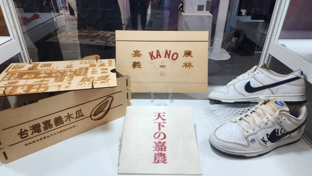 21歲陳弈通目前就讀美國薩凡納藝術學院,主修平面設計、副修球鞋設計,他在社群常公開個人文創作品,展現出獨特美學和文武雙全的一面。本次參展除棉被改造的外套跟背包,還有利用炸醬麵碗與台灣知名美食外帶包裝紙盒,重新製作的運動造型公仔,以及陳弈通小時候很喜愛的電影「KANO」,運用電影經典台詞跟概念,設計出的球鞋和鞋盒。
