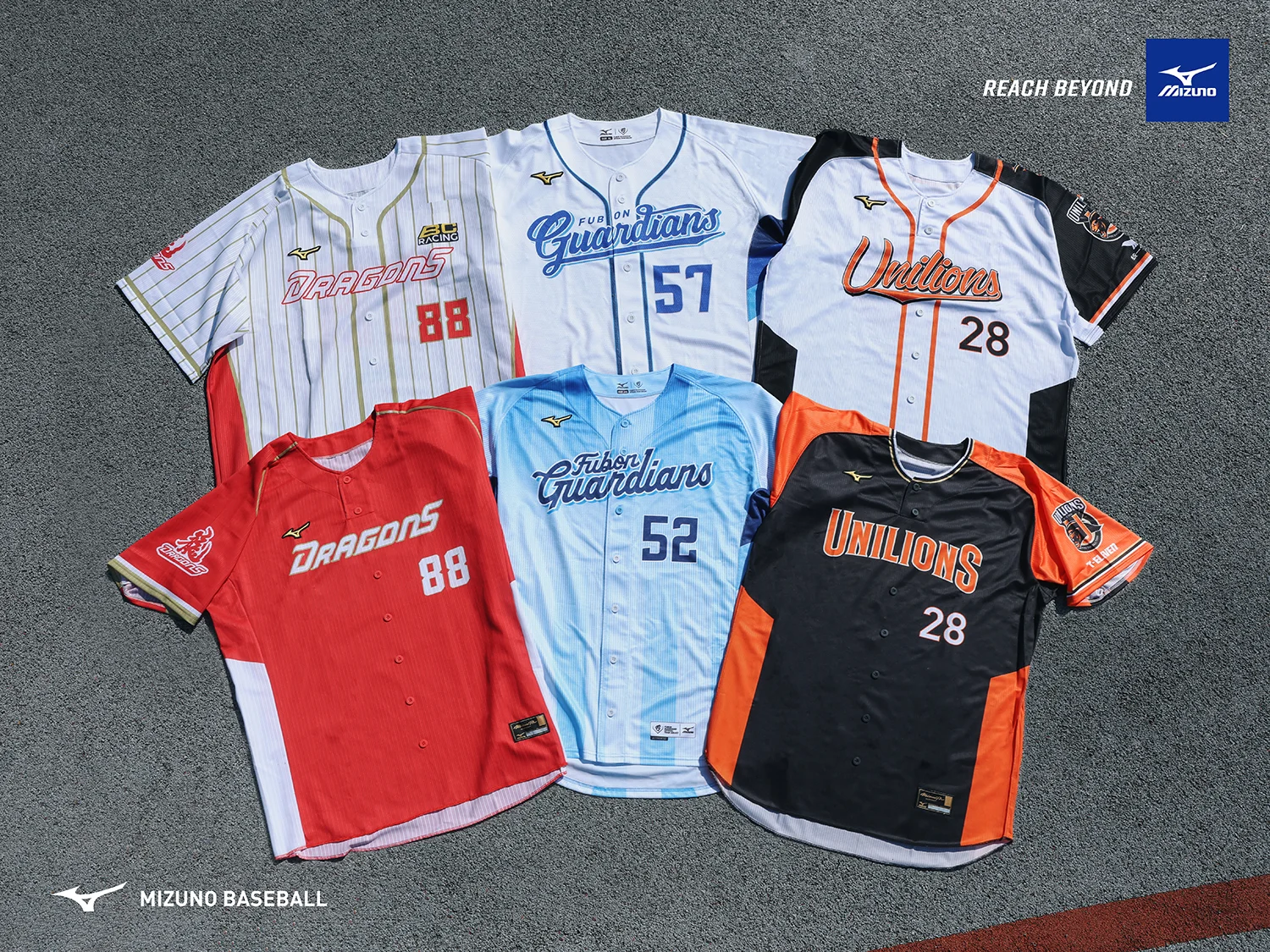 新球季的統一獅、味全龍與富邦悍將,採用美津濃的球衣與球褲製作,並使用美津濃的訓練服飾與後勤裝備,透過美津濃的完整棒壘球產品線,打造符合職業棒球需求的生態體系。包括球衣與球褲,如何在台灣濕熱的天氣跟耐用舒適取得平衡;或是在南台灣春訓時,在清晨的乾冷與中午的炎熱,尋找出讓球員穿的最舒適的訓練衣物,台灣美津濃在地深耕的長久歷史與經驗是最好的後盾。