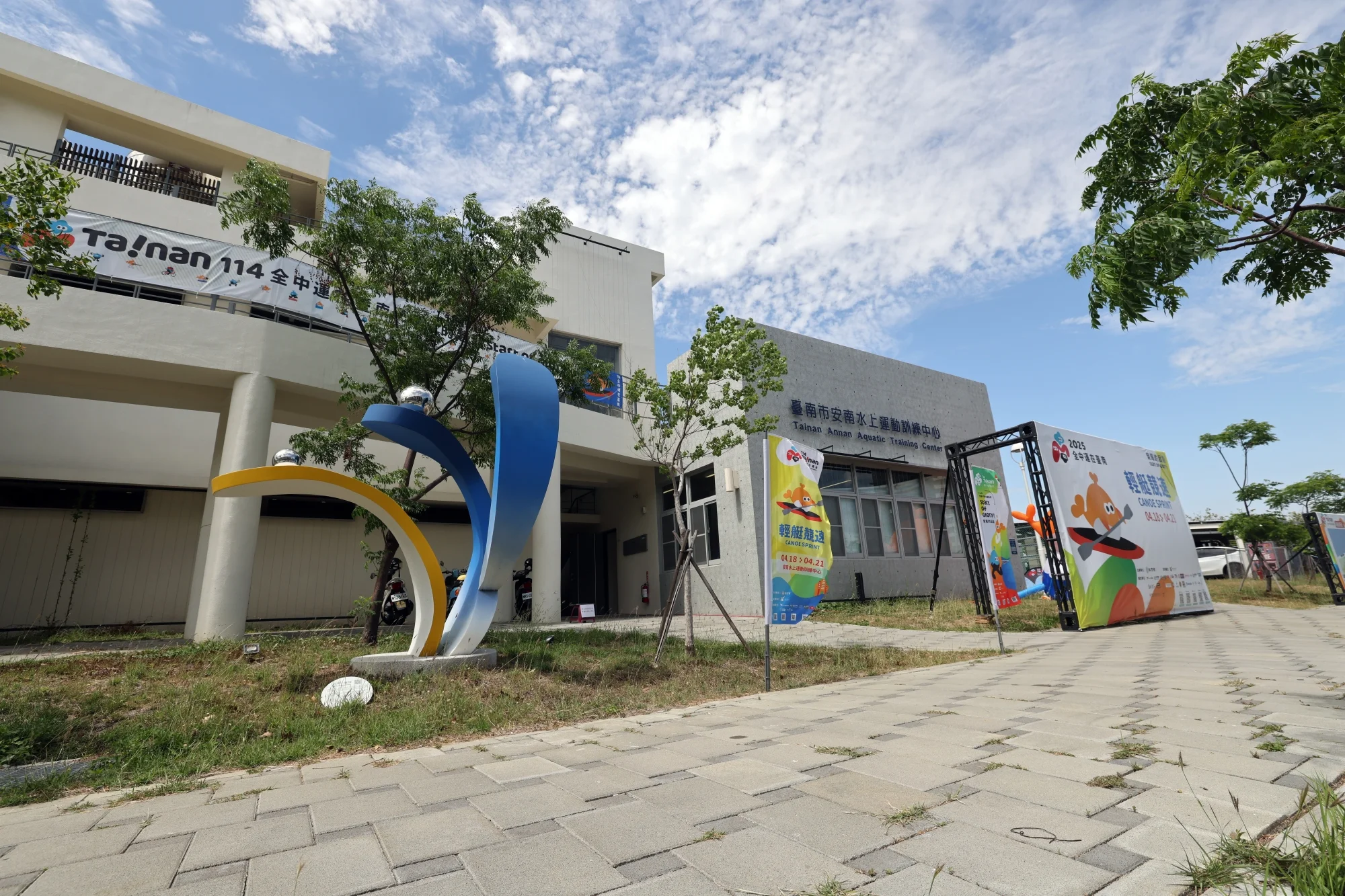 安南水上運動訓練中心斥資1.1億元,前年正式啟用,設有輕艇划船艇庫、體能訓練室、盪槳池、浮動碼頭及浴廁等,提供專業水域運動訓練。全白流線型建築外觀,搭配水上浮動碼頭設置,不僅美輪美奐,更獲得綠建築鑽石級標章。
