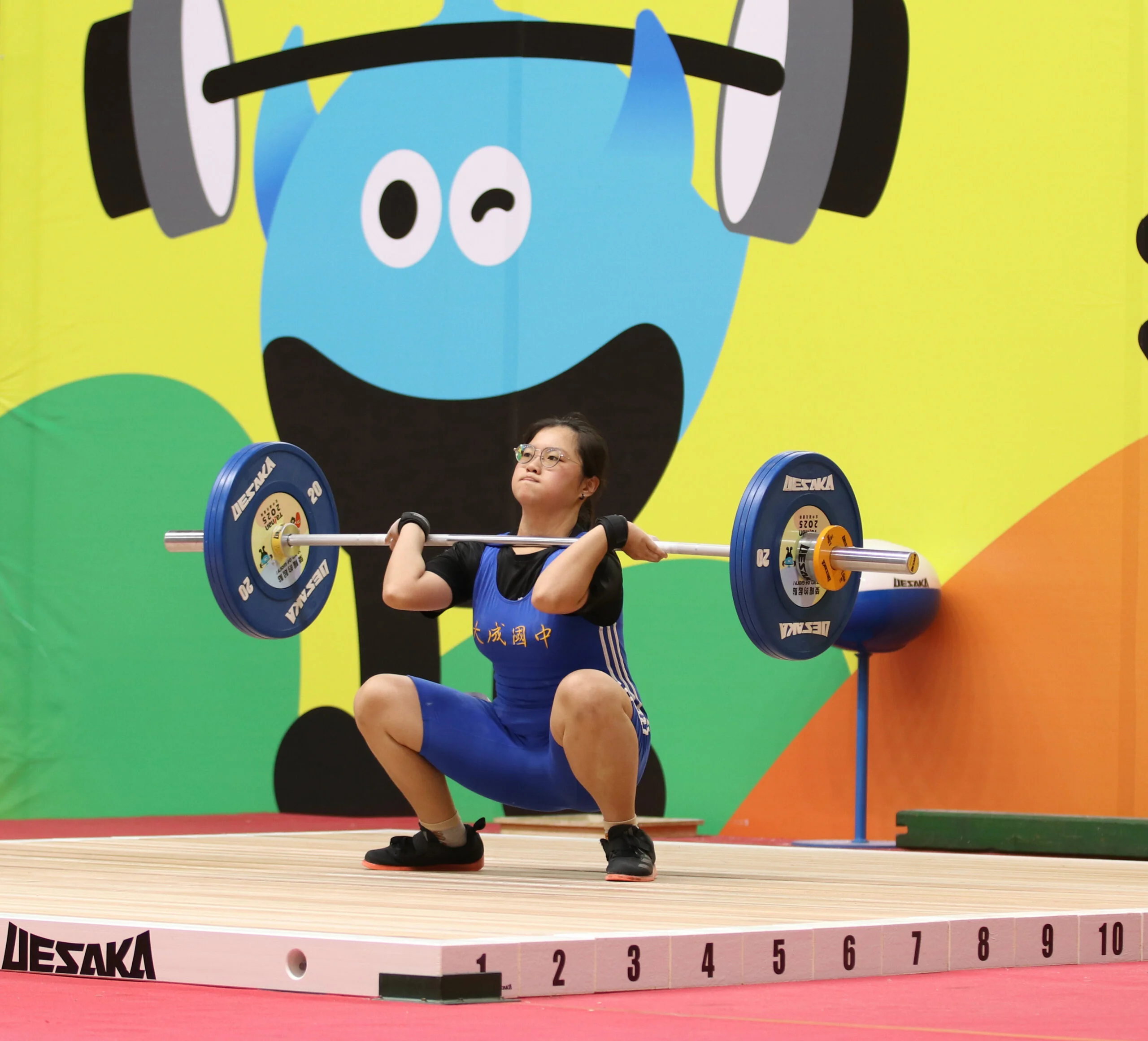挺舉第三把奮力舉起71公斤,臺南市大成國中陳品蓁大吼一聲為自己歡呼,下台後更直接落下淚水,最後以抓舉53公斤、挺舉71公斤,總和124公斤奪下初次全中運銅牌。