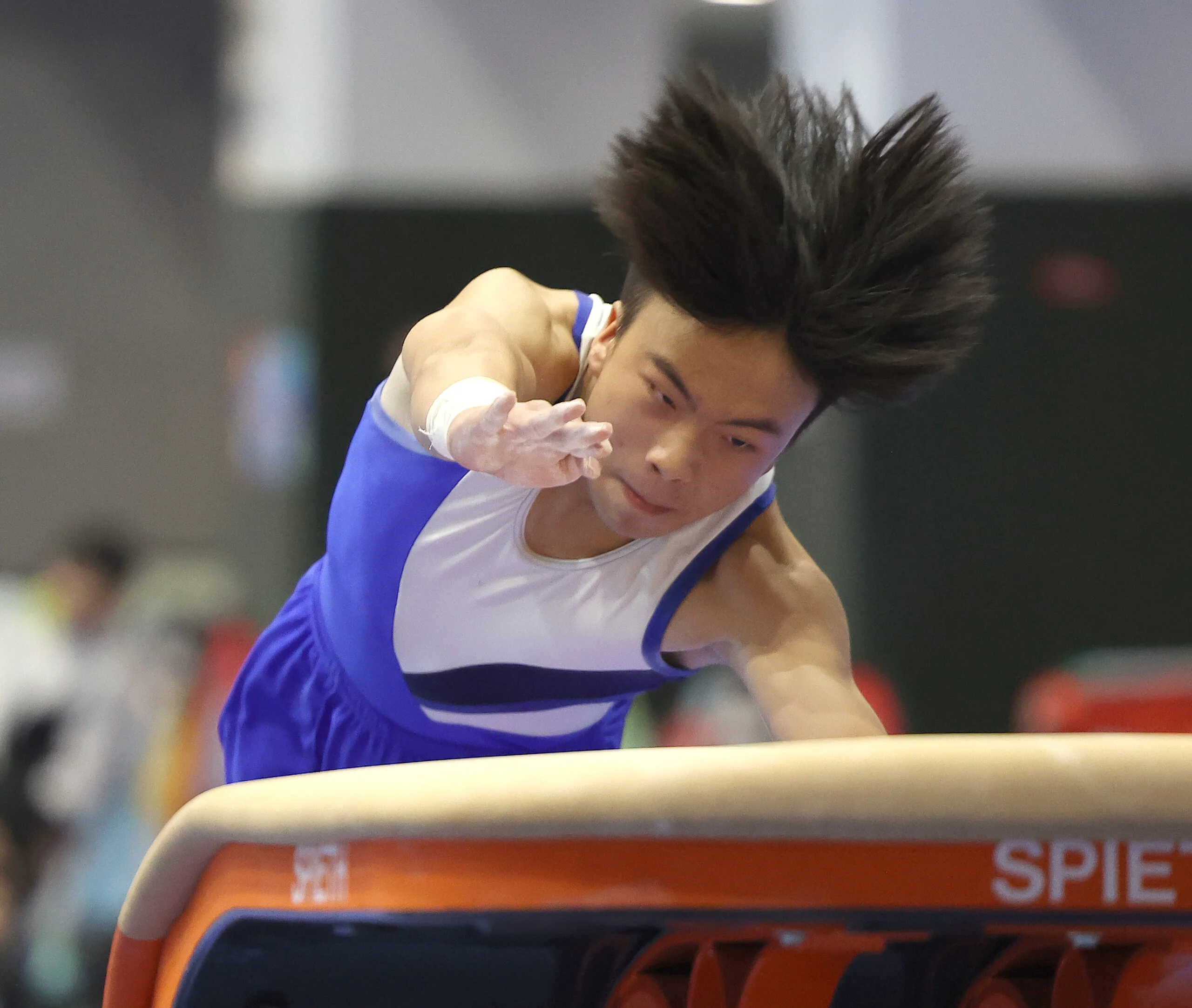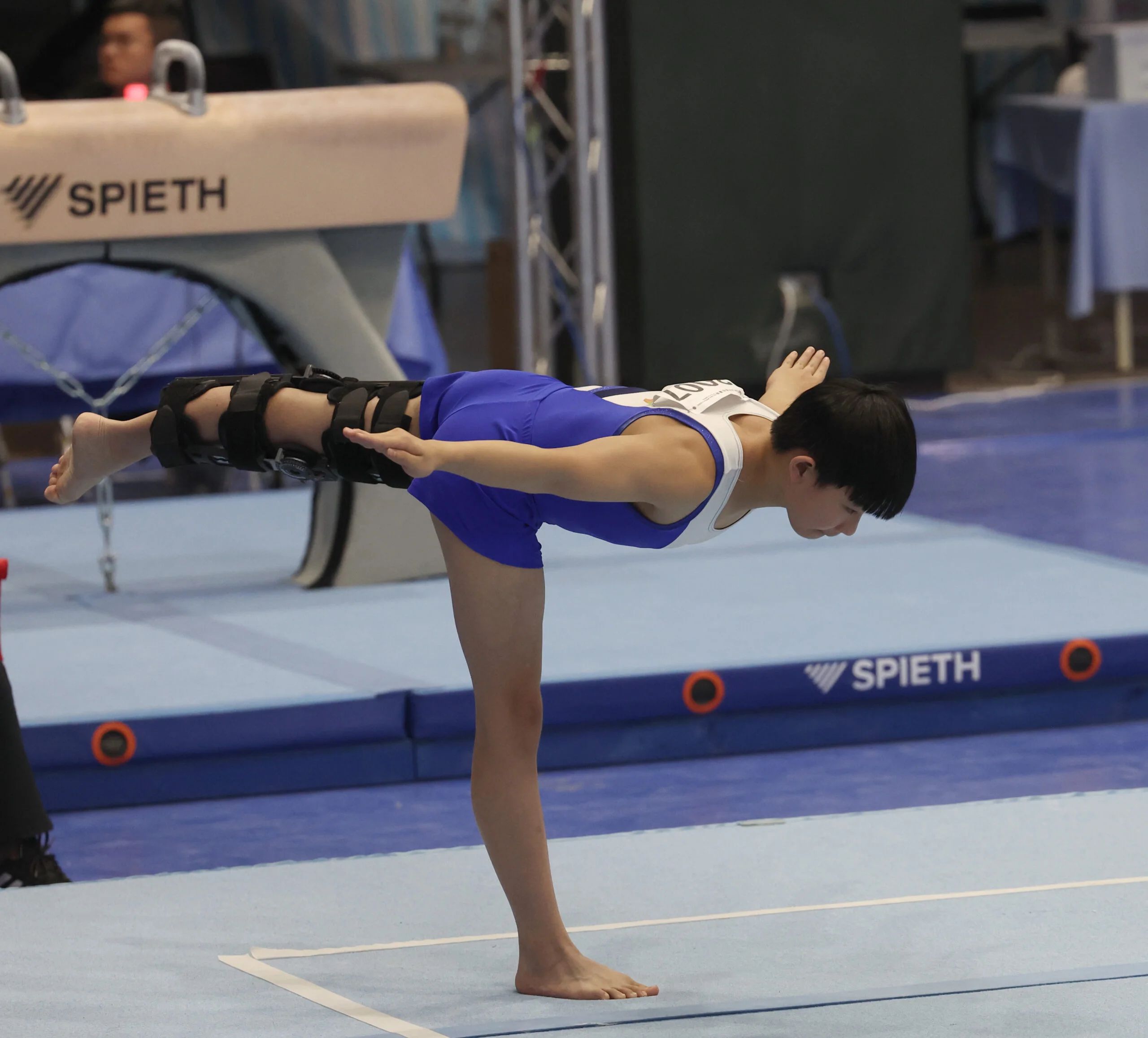 另外,螢橋國中林恩仰三月中在2025年第12屆亞洲成年及第18屆亞洲青少年競技體操錦標賽選拔中傷及左膝蓋脛骨,今天在第一個項目地板上場,做完符合規則的一個動作,便下場在場邊為其他隊友加油,也協助隊友一些動作,以另一種方式完成今天賽事。