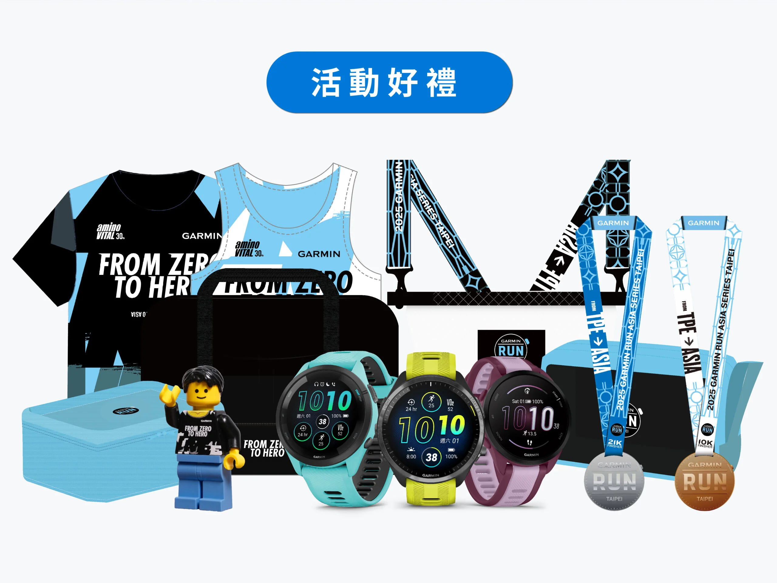 2025 Garmin Run臺北站今年首度推出全球獨家限量「Garmin Run 積木人偶」,成功報名5K勇氣組並完賽的跑者即可獲得,邀請全民參與路跑行列,打造童趣、可愛的跑步體驗。同時,所有組別參賽跑者可獲得市值超過 NT$2,000的豐富報到禮與完賽禮,今年更以亞洲跑旅主題打造限量週邊商品,完賽即可參加主題活動與贊助商破萬超值商品體驗,還有機會抽到 Garmin Forerunner 系列錶款,總價值破百萬好禮等你帶回家!