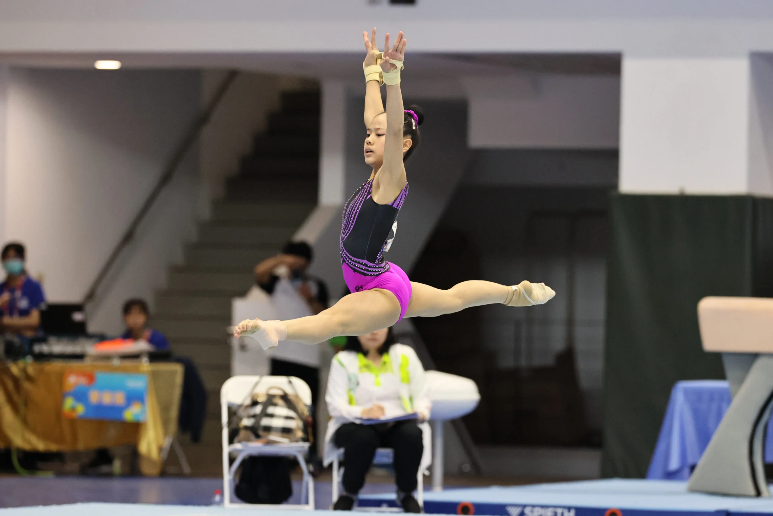 翻開秩序冊名單,民生國中其實有報名周美、陳妍初及林璽棠三位選手,可惜林璽棠因為有傷不克參加,林祥威說:「其實她是彈翻床的選手,原本想說改一下,做幾個動作,可是因為有點傷,就不要勉強他,所以這次重心就是放在準備個人單項跟全能決賽。」