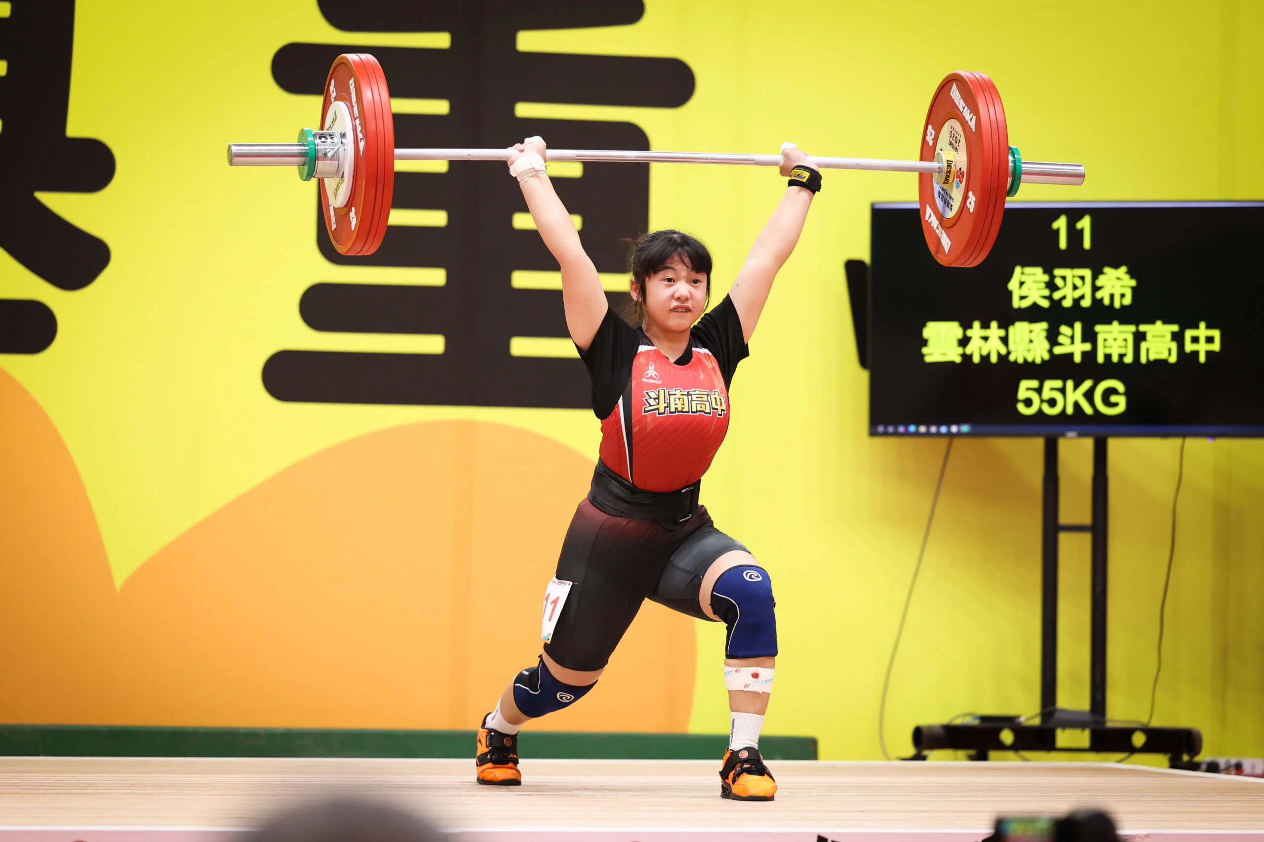 來自雲林縣斗南高中的侯羽希,今天在高女55公斤級以抓舉64公斤、挺舉82公斤、總和146公斤斬獲金牌,已是連續兩年參與全中運獲得金牌,蟬聯二連霸。今年僅高一的侯羽希,賽後表示這幾天在備戰過程的狀況表現起伏不定,今天賽前與自己信心喊話,以致臨場感覺漸入佳境,「大比賽前難免會緊張,但今天還蠻興奮的,原先目標設定金牌,但我有跟自己說,一直這樣想反而會讓自己有壓力,所以今天出賽有放慢節奏,前面情緒沒有到很好,但後面教練跟隊友們在旁邊一直鼓勵,後來就有比較放得開,也成功如願拿到金牌。」