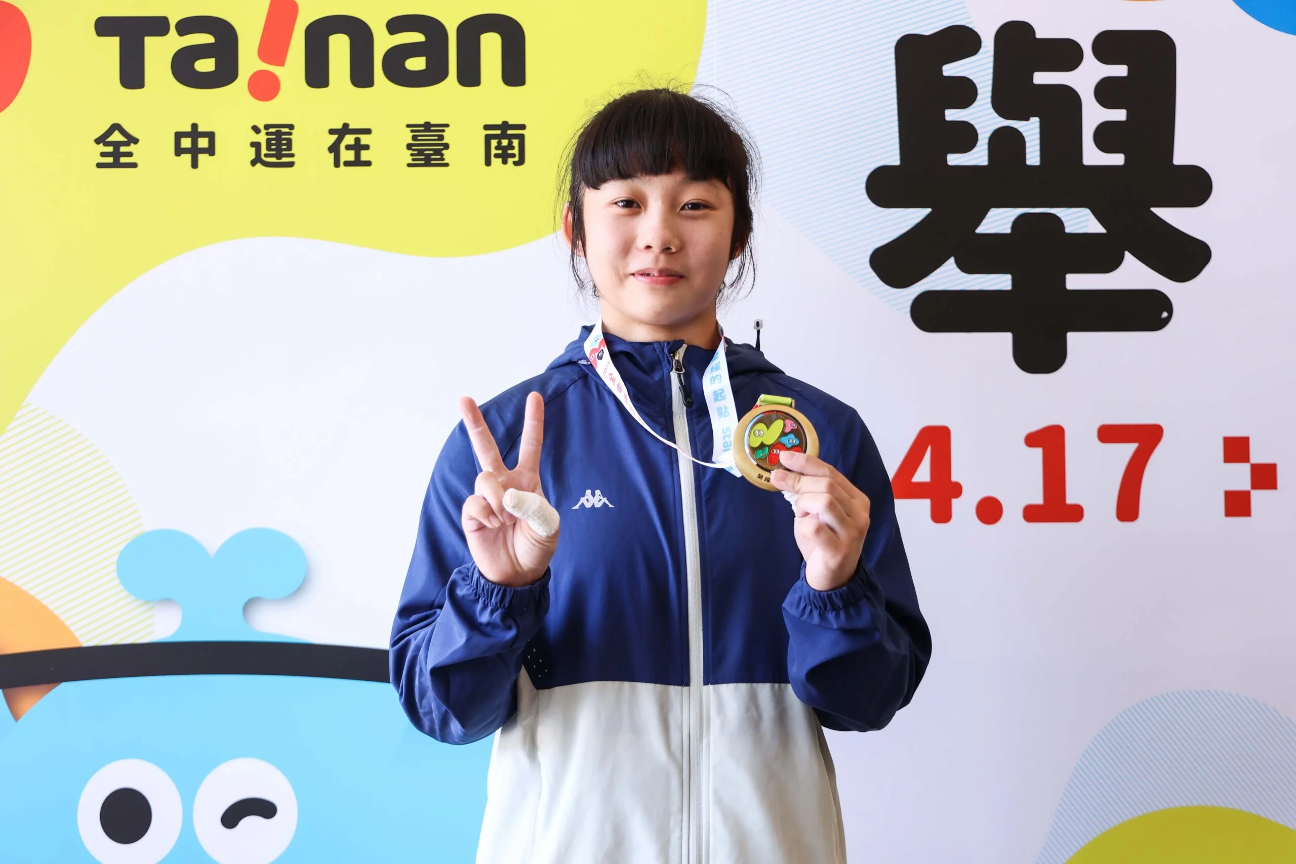 斗南高中侯羽希身型嬌小但卻有不俗力量,去年全中運在國女組45公斤級強勢摘金,自田徑輾轉舉重後,國中更歷經半月板撕裂的重大傷勢,如今能連續兩年奪得金牌,她感謝自己努力,同樣也感謝這兩年幫助她的人,尤其是她受傷之際,無償為她治療的廖啟宏醫師,才得以有今日的成績。