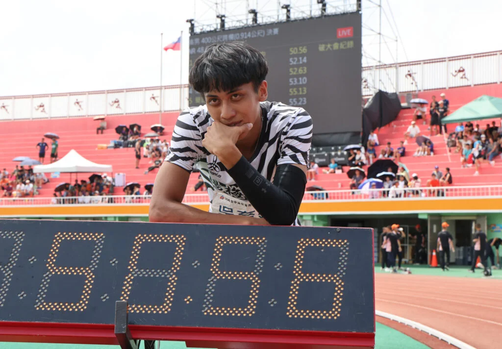 楊梅高中吳育廷日前在114年全國中等學校運動會高男組110公尺跨欄決賽,跑出亞洲U20新紀錄13秒15,今日在高男組400公尺跨欄決賽又以50秒56打破大會紀錄,加上和隊友拚下的4×400公尺混合接力金牌,帶著三金告別全中運舞台,賽後他開心的對著遠方休息區的教練莊一鴻大聲致謝,他笑道:「原本還想跑到休息區,但腳真的沒力了。」