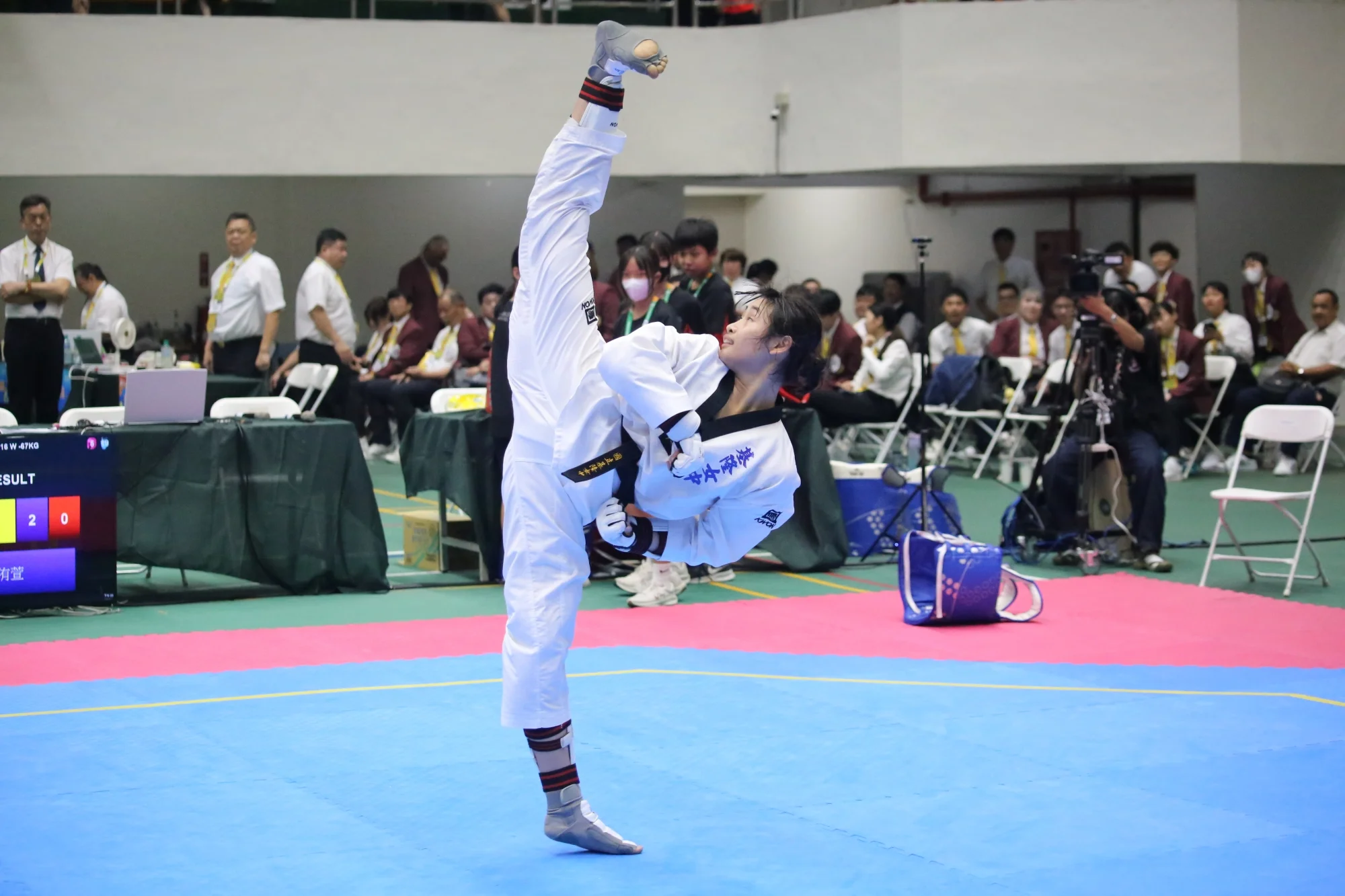 其實率先舉行的國中組賽事,永和國中黃子熒一度有機會挑戰紀錄,但她在國女組品勢個人賽鍍銀,然後才在對打摘金,締造歷史的機會來到林侑萱身上。
