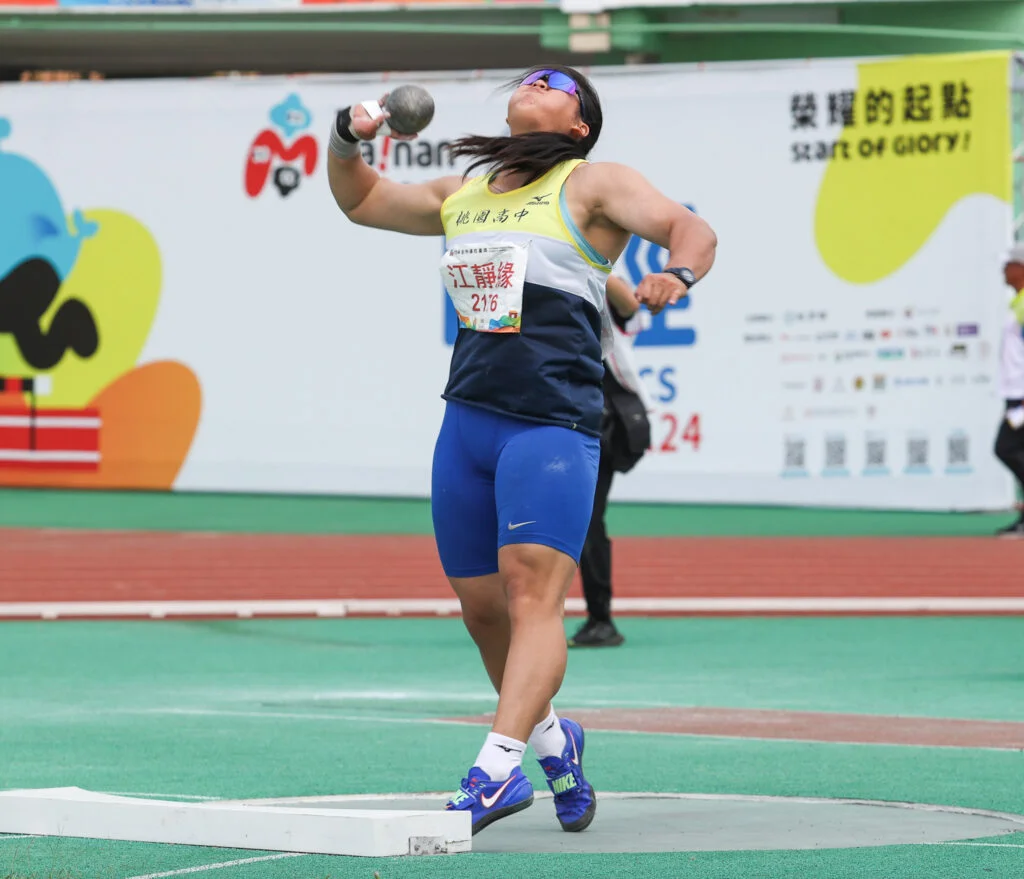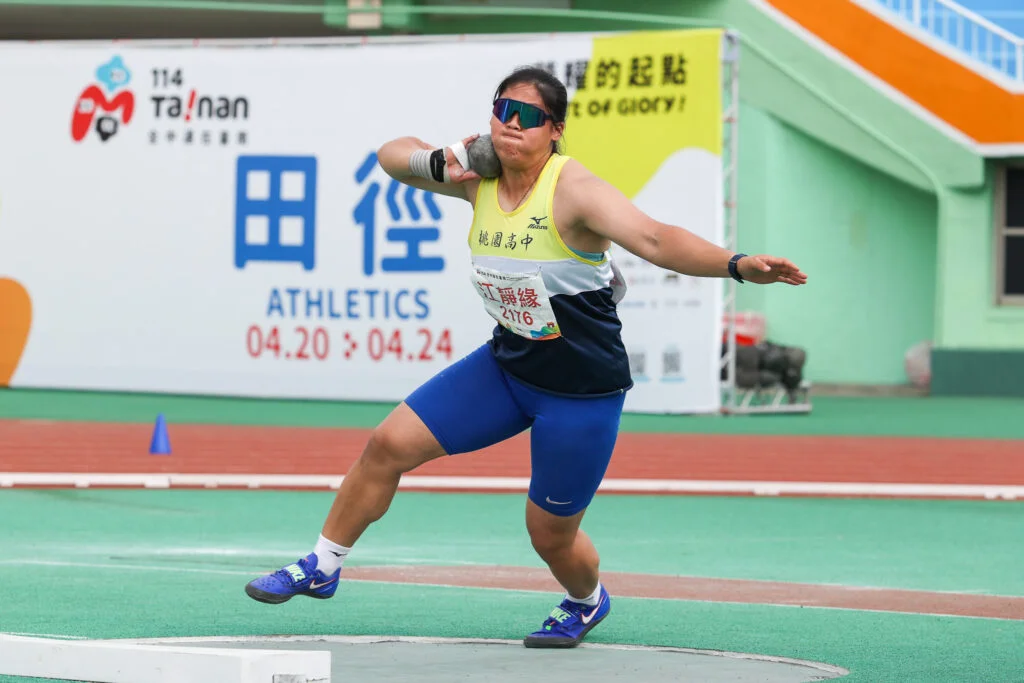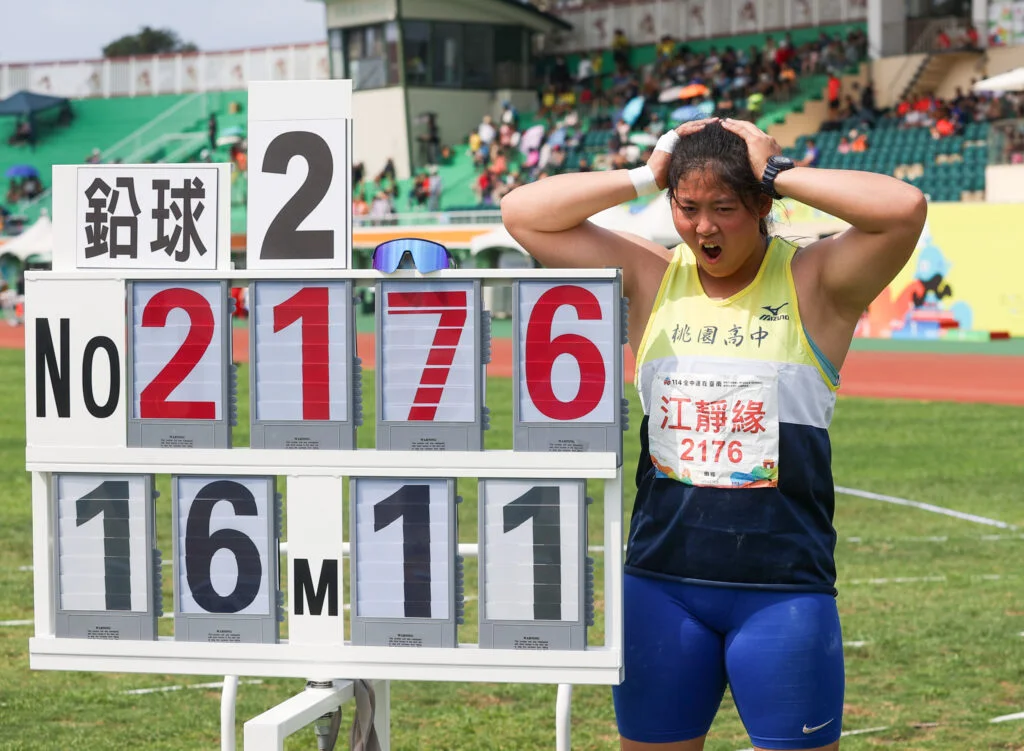 桃園高中江靜緣在114年全國中等學校運動會高女鉛球決賽第二擲出16公尺11打破自己去年的大會紀錄。剩下四擲瞄準全國紀錄17公尺48,可惜都以失敗收場。帶著些許遺憾,結束高三最後一年全中運。