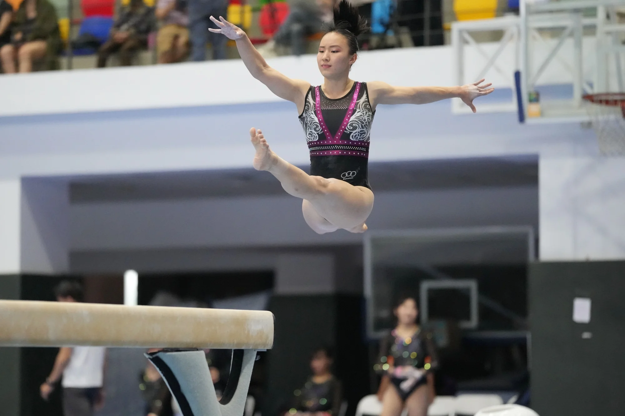 這天114年全大運競技體操公開女生組成隊競賽,同時也是德國世大運選拔,丁華恬跳馬12.000分、高低槓12.550分、平衡木14.300分跟地板11.600分,全能得分50.450分。