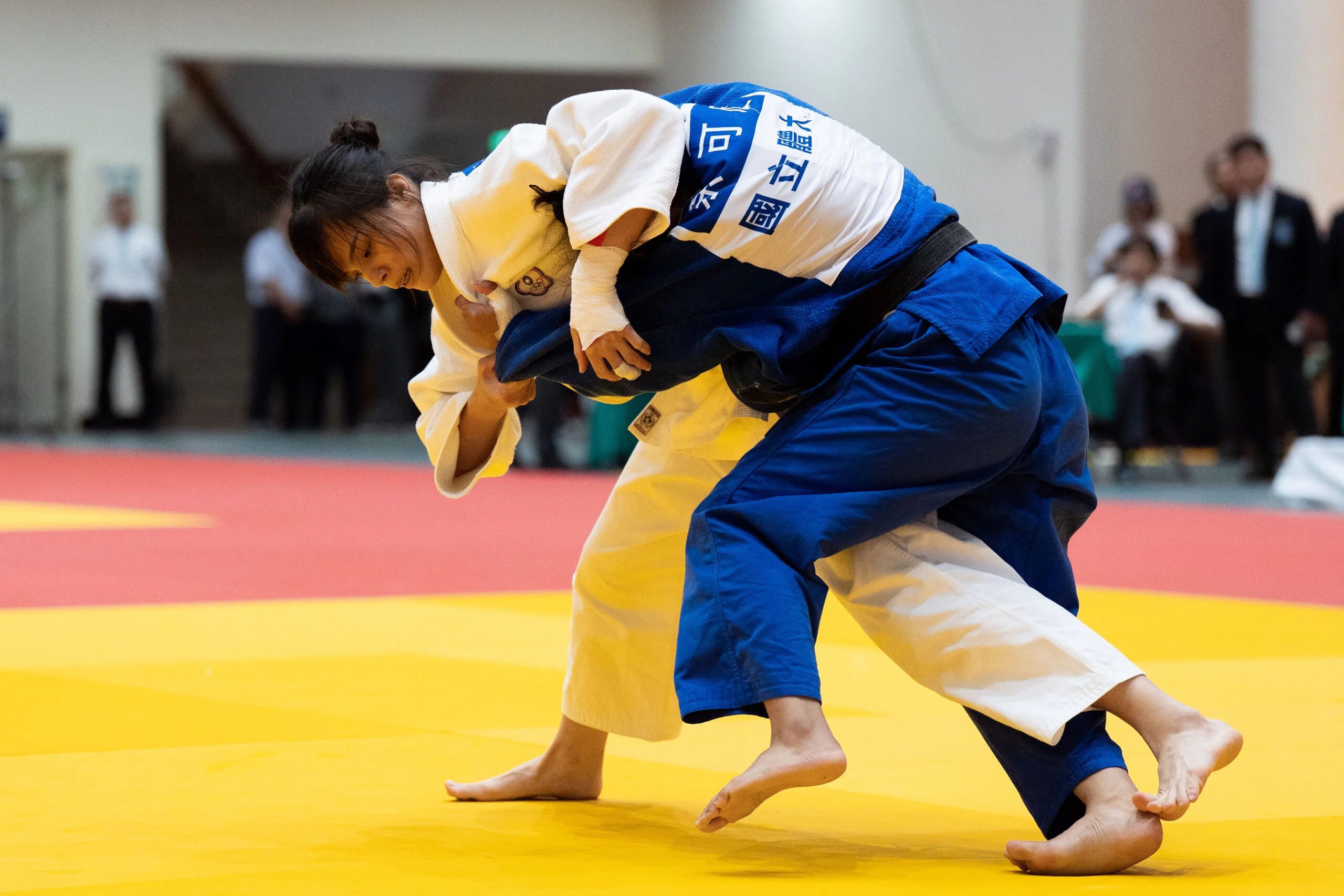 28號從亞錦賽回台後,29號來到全大運過磅,今天隨即出賽,袁姵君也將奪牌的這份感動化作場上動力,「在摔的上面會比較有自信再去做攻擊還有施術,我覺得在心態上有明顯不一樣。」