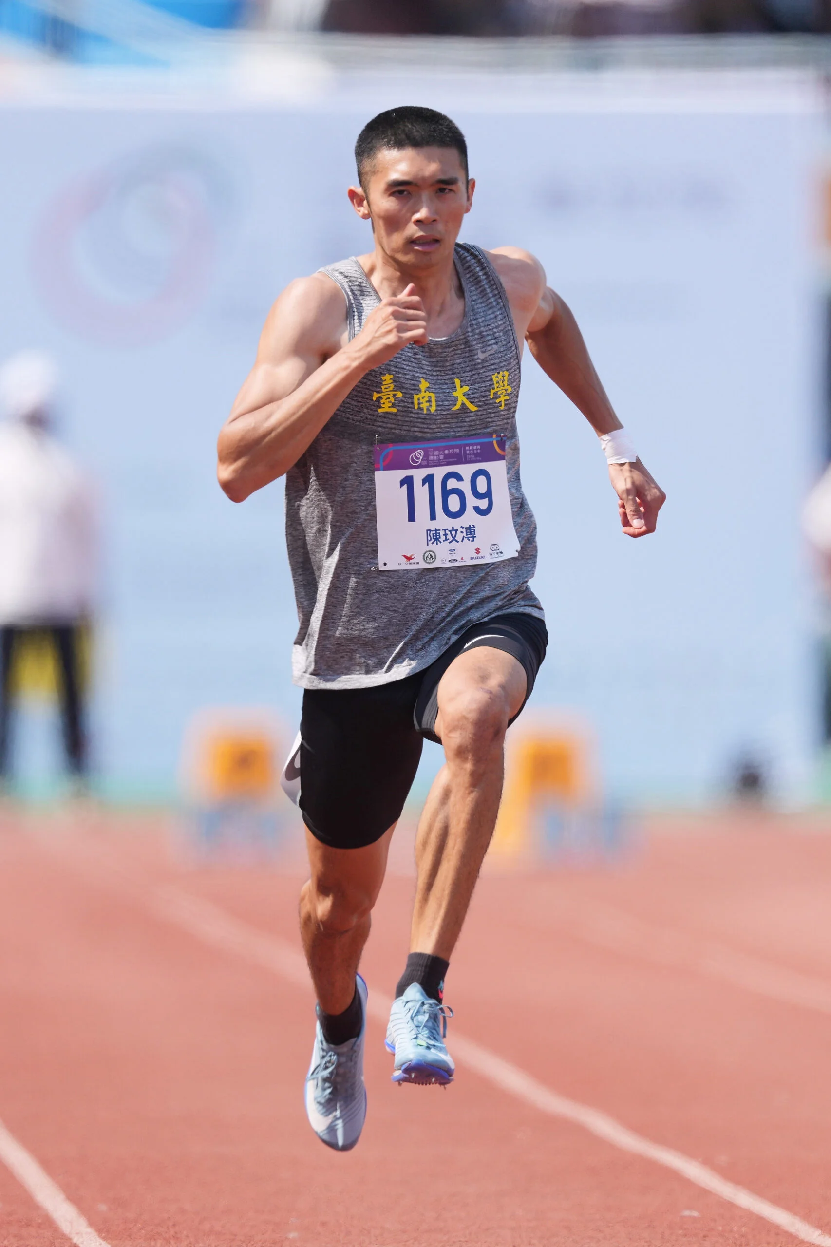 臺南大學陳玟溥在114年全大運田徑公開男生組100公尺決賽,衝出個人最佳的10秒29摘金,並列歷年第六傑。