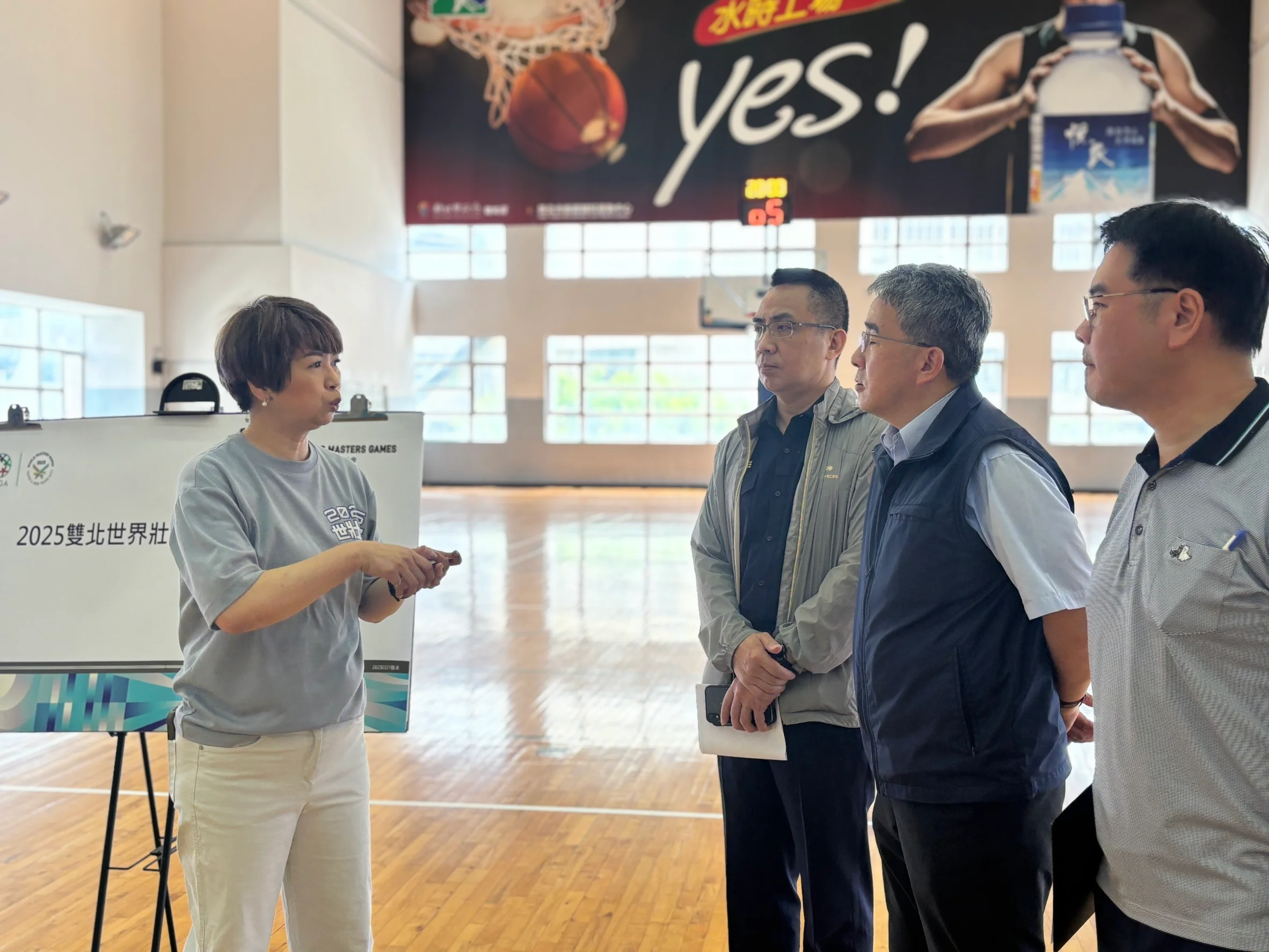 2025年雙北世界壯年運動會開賽倒數,35個競賽種類將在61處場地比賽,新北市政府自4/24起展開競賽場地總檢查,今(5)早由新北市政府龔雅雯副秘書長率隊和體育、消防、交通、衛生、警察及觀旅等局處,及3對3籃球競賽技術代表王聲葦、裁判長黃奕齊,來到板橋國民運動中心,進行場地總檢查。