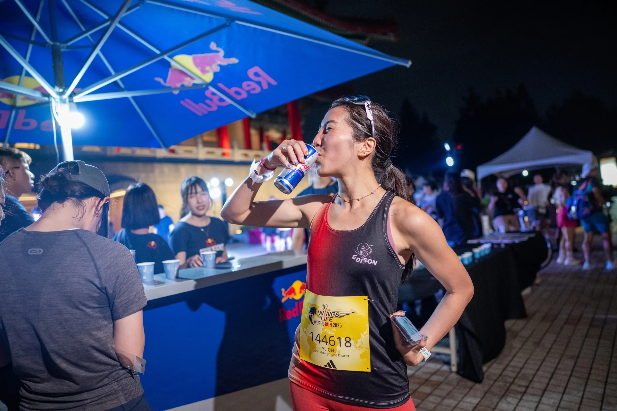 今年Wings for Life 台灣賽事超過1,300人報名,更有逾500名跑者聚集在中正紀念堂團跑。跑者們透過線上APP與耳機聆聽虛擬終結者號的追趕和鼓勵,一同與全球跑者完成自己的目標。今年台灣跑者中創下最遠距離的是有許多練跑學生的「愛迪生老酥」黃毓軒,他在第二次參加 Wings for Life全球路跑即奪下台灣男子冠軍。相較於第一次的19公里,他坦言在這次挑戰過程中曾兩度萌生放棄念頭,但「為了不能跑的人而跑」,就有了繼續前進的動力。他分享:「告訴自己要堅持下去,即便速度變慢,也要盡力完成。」最終超越個人過往的全馬紀錄,跑出46.81公里的佳績。