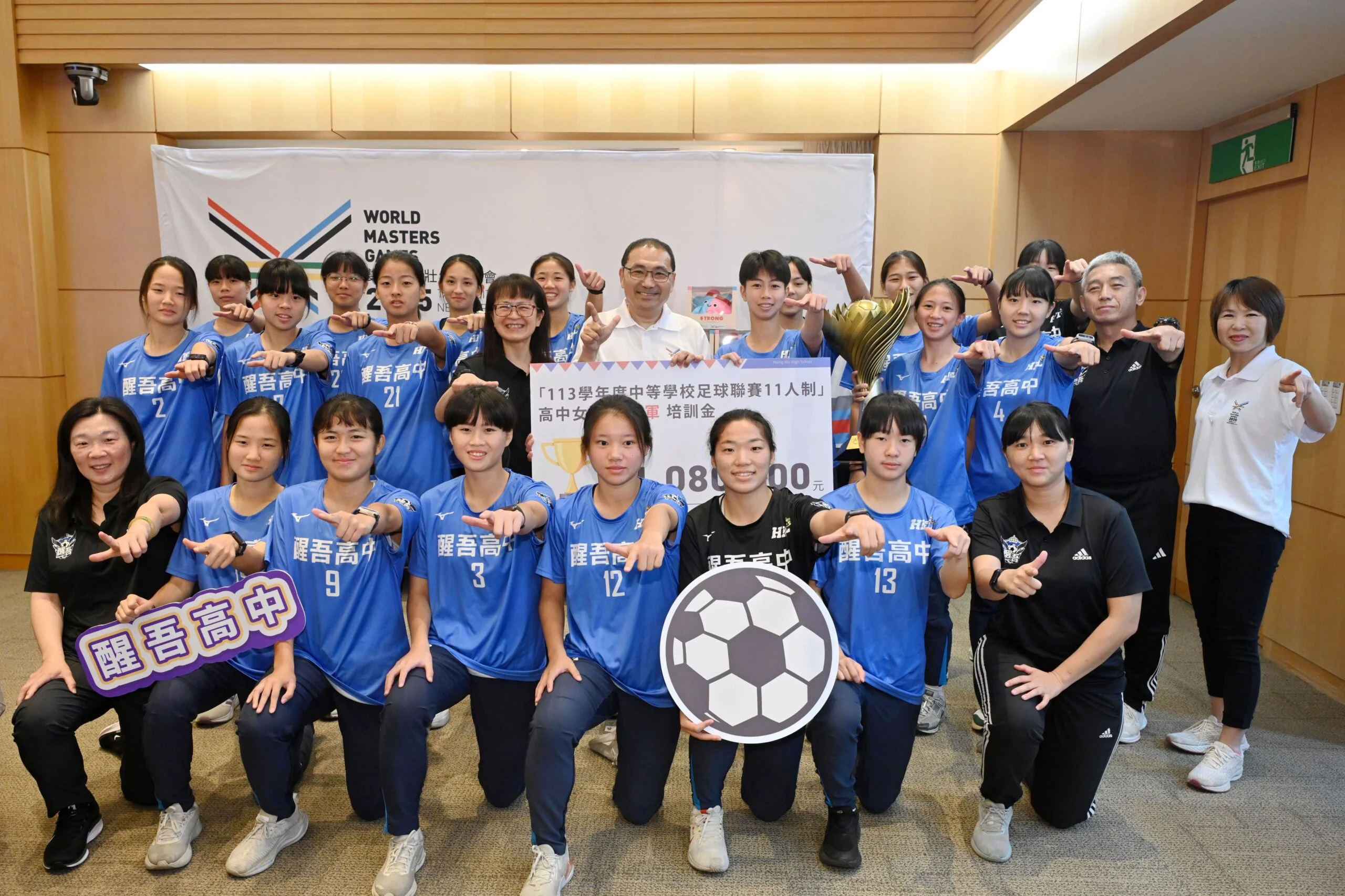 113學年度中等學校足球聯賽11人制(HFL),歷經長達近四個月的賽期後,高女組由新北醒吾高中封后連霸;蘆洲國小則在全國少年盃足球錦標賽,獲得學校男子五年級組冠軍,今(14)日市政會議,二校分別由隊長高馨(醒吾)及黃義升(蘆洲)獻上冠軍金盃。