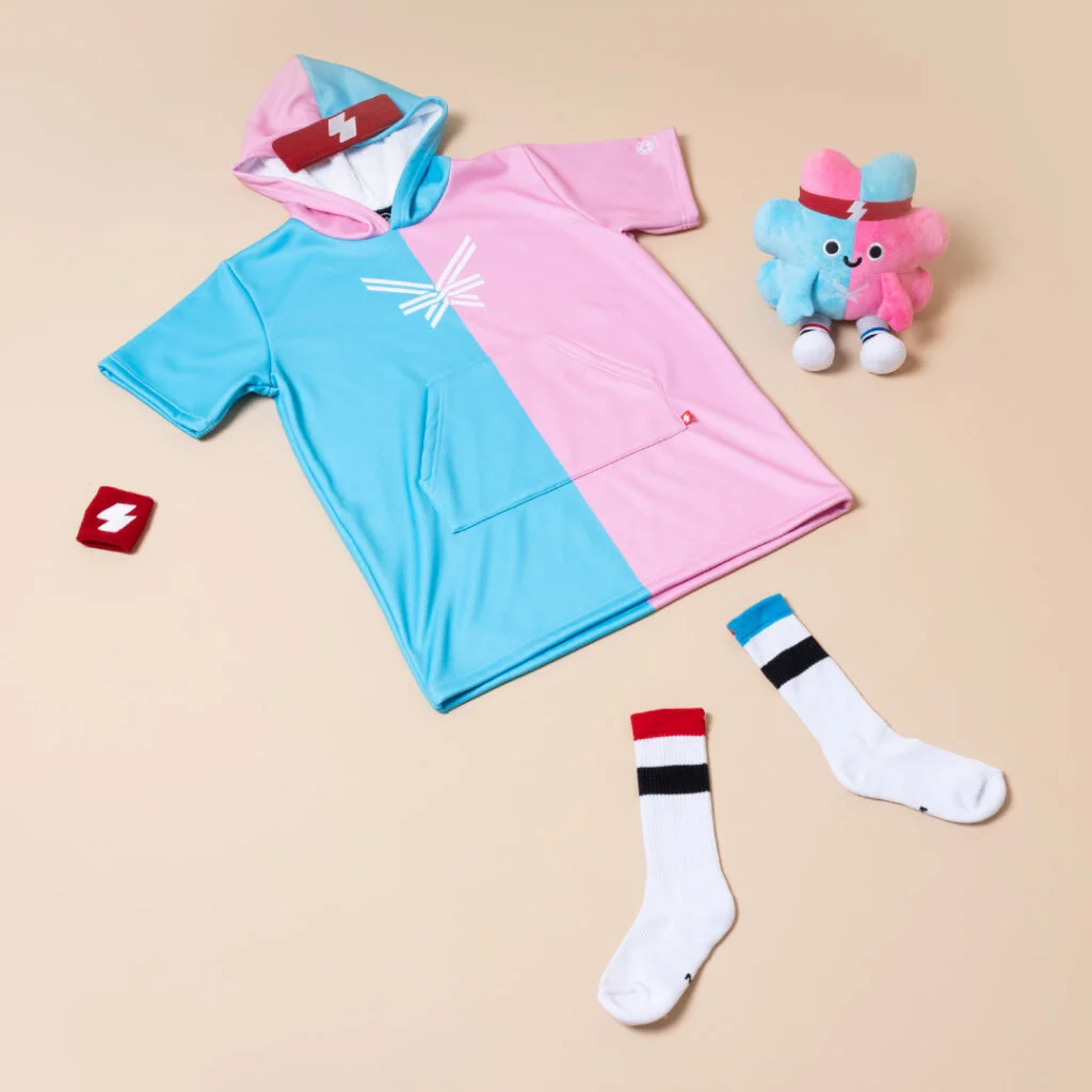 當壯寶正式亮相後,周邊商品設計團隊特別選用壯寶的經典粉藍與粉紅作為主色,打造出第一波實用又有型的商品——吸睛度百分百的壯寶配色毛巾衣。這件毛巾衣不只有成人尺碼,還特別設計了兒童款,讓小朋友也能變身「壯寶小子」,在場邊幫爸爸媽媽加油時成為最萌應援團,場上場下都超有戲。