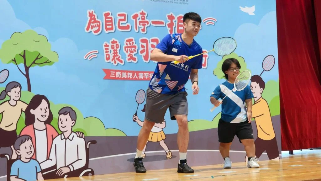 王齊麟這天出席三商美邦人壽與罕見疾病基金會合辦的「為自己停一拍 讓愛羽你同行」公益活動,王齊麟跟帕運羽球國手蔡奕琳到場指導小小病友,並分享遭遇難關時的經驗。