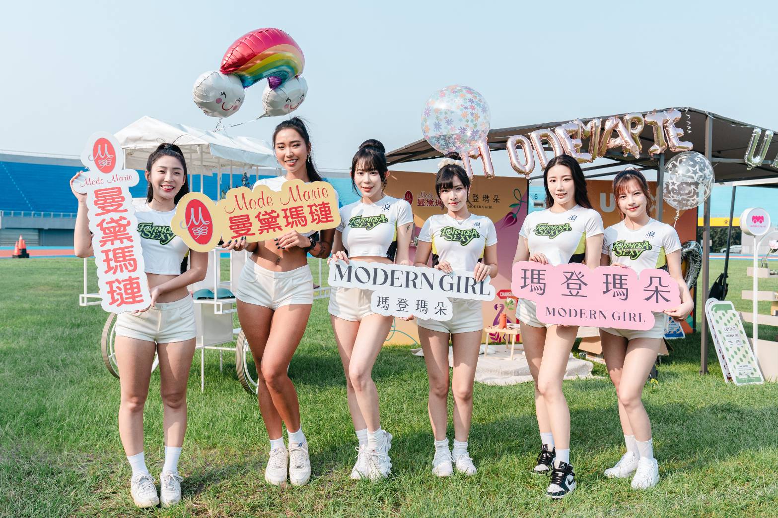 今天活動由NIKE簽約教練團Yuli與Lesley帶領Formosa Sexy的成員梓梓、Lulumi、Ariel、小雞、盼盼與Momo跟大家一起進行有氧派對以及瑜伽體驗。