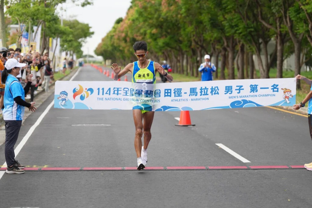 雲林全運會最後一天田徑馬拉松賽事,周庭印以2小時28分11秒率先通過終點,臺北市蔡政軒則跑出2小時34分47秒居次,彰化縣趙宥瑞2小時35分20秒摘銅。這天清晨雲林縣立田徑場附近風勢沒有像近幾日受到颱風「風神」外圍環流影響,順逆風煎熬,不過選手依舊相當辛苦。