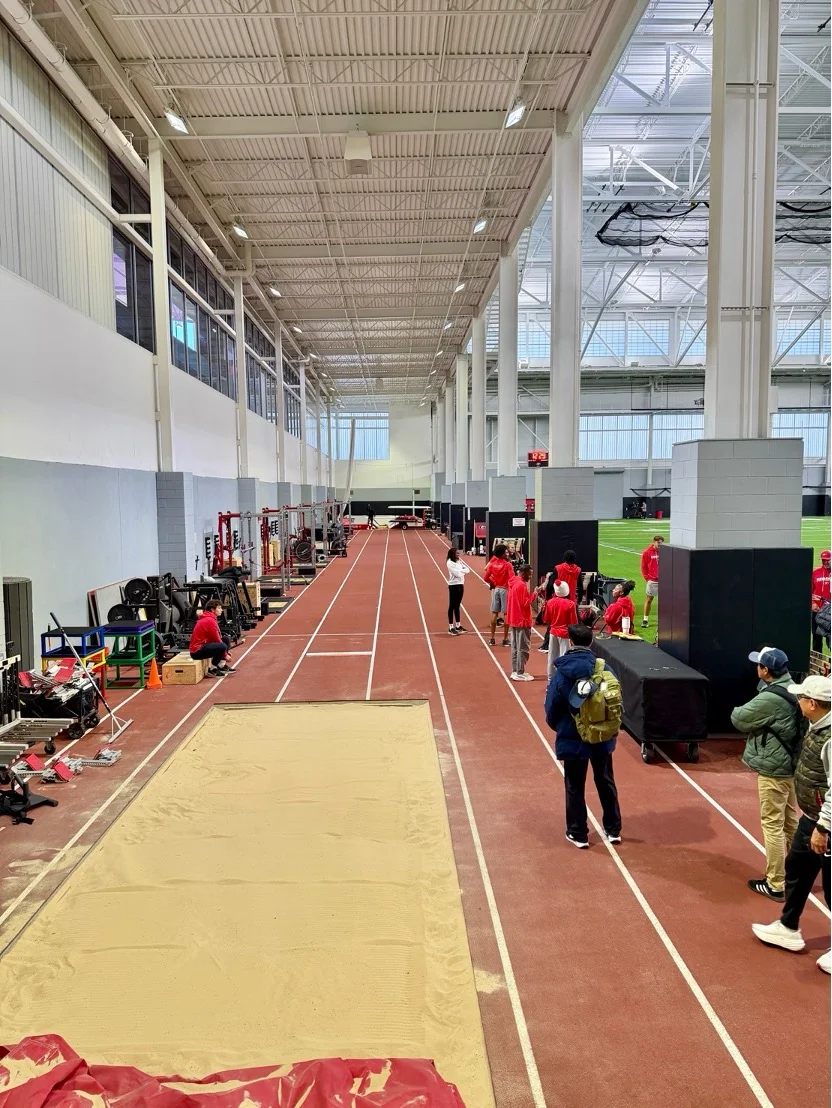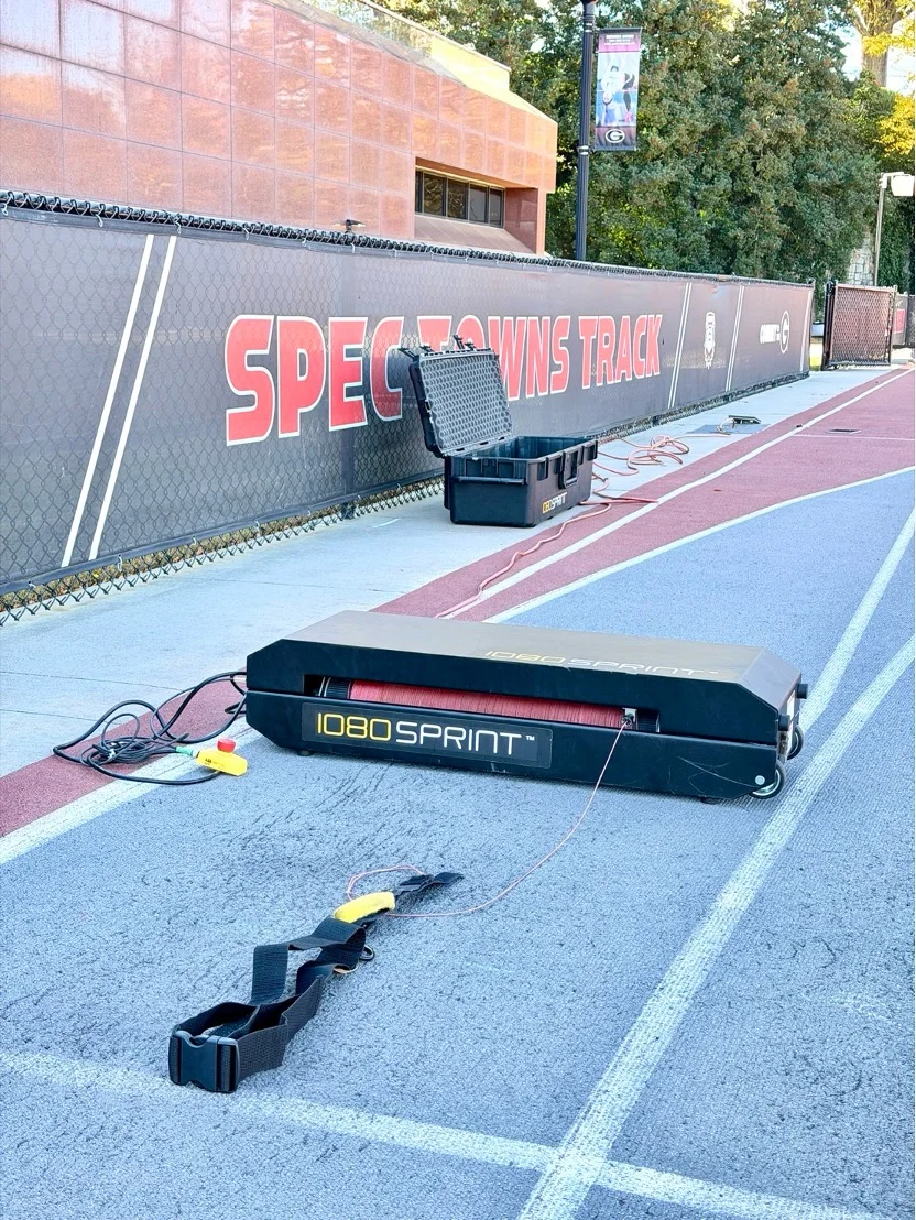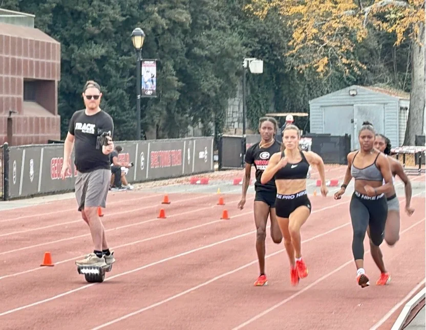首先,UGA 訓練場館的完善程度遠超過大家的想像。室內外跑道、重量訓練室、恢復區、運動科學測量設備等,都完整且專業,深深體會到「科學化訓練」在美國大學田徑競技運動中的重要地位。每一項訓練、從每一次熱身都有明確目的,教練也會依選手狀況設計規劃調整,而不是盲目追求質量或速度。
