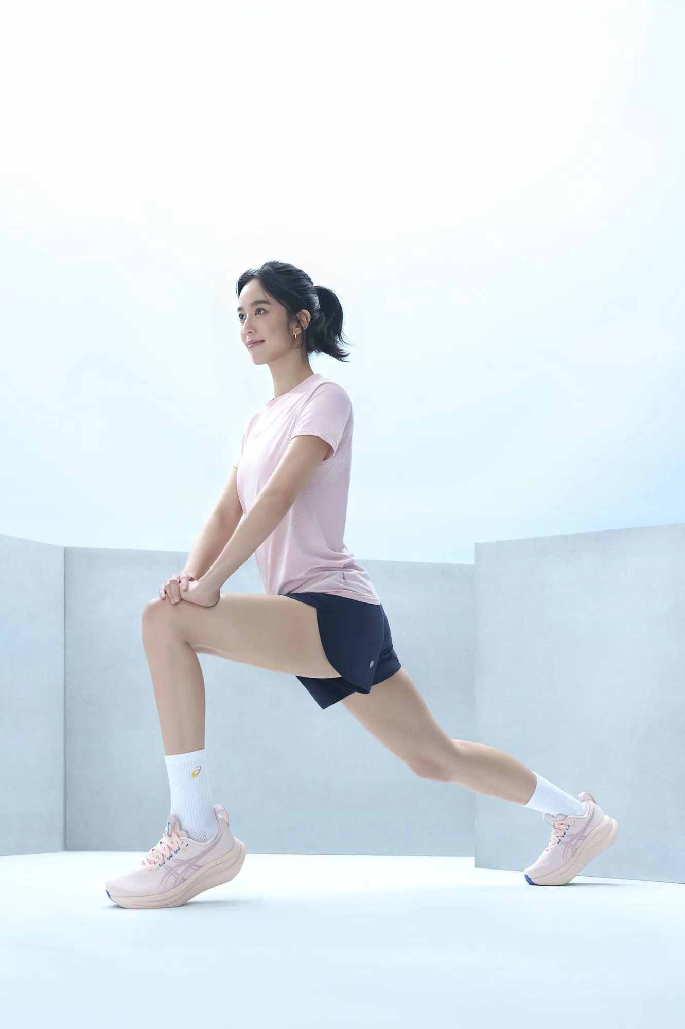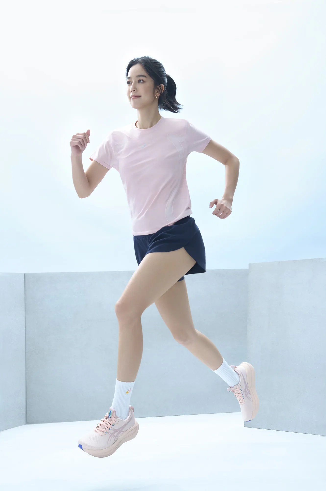 迎接新品上市,品牌形象大使陳庭妮也率先演繹 GEL-NIMBUS 28 與 P.LIFE 系列服飾,跑出輕盈步伐。