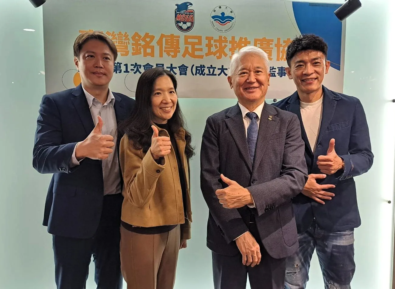 由新光人壽董事長魏寶生發起,獲得銘傳大學副校長李藍瑜的支持,「台灣銘傳足球推廣協會」今天在銘傳大學正式成立,首任理事長就由魏寶生擔任,銘傳大學足球隊教練曾台霖則為秘書長,「台灣隊長」陳柏良驚喜現身,也獲選擔任理事,繼續為推動台灣足球發展努力。