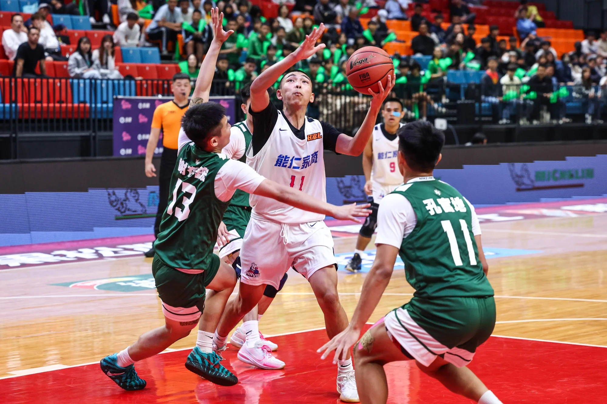 全隊只有一名球員身高超過190公分,能仁家商以「地虎陣」展開新學年的挑戰,勇闖12強的第一戰,以2分差驚險擊敗強權光復高中,打出不同氣勢,今面對「南霸天」高苑工商,儘管三分球命中率不到兩成,仍憑藉防守擋住對手反撲,終場以73:62擊敗對手,搶下二連勝。